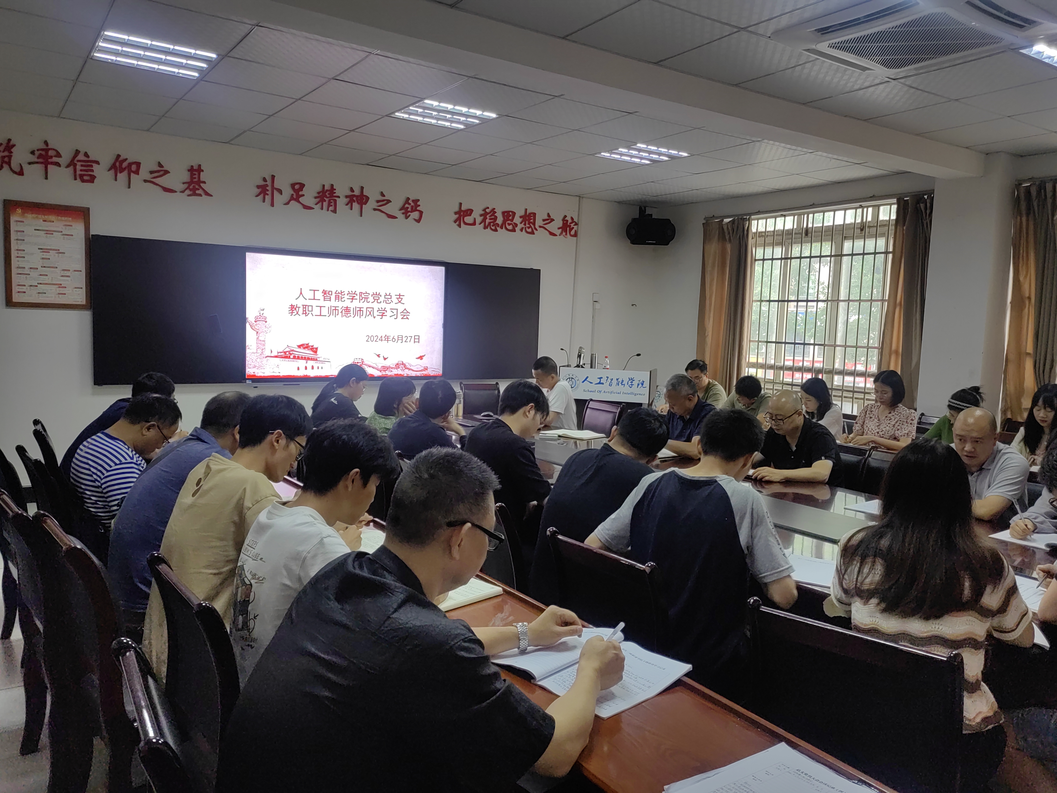 2025年6月10日,人工智能学院党总支在信科楼503召开6月师德师风暨警示教育专题学习会,本次会议全体教职员工参会,会议由党总支书记熊泽明主持。本次学习主要围绕师德师风和专题警示教育两个模块进行。师德师风专题学习内容为师德师风警示案例汇编(2025年6月),分为师德失范方面、网络赌博方面、醉酒驾驶方面等三个方面进行学习。 警示教育学习内容包括《纪法百科·通报解读丨“人情往来”,还是违纪违法?》、《市纪委监委公开通报5起违反中央八项规定精神典型问题》...