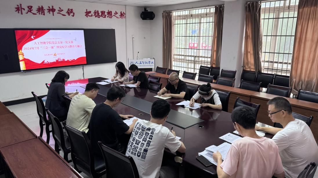 2023年7月6日,人工智能学院党总支,在信科楼503开展7月“三会一课”和主题党日学习教育专题会。会议由人工智能学院党总支书记熊泽明主持,总支委员、中干、支部书记等7人参加。 会议传达学习了习近平总书记对“以学正风”的深刻阐述、习近平总书记在文化传承发展座谈会上的重要讲话精神、习近平总书记在中共中央政治局第六次集体学习时的重要讲话精神、习近平总书记对党的建设和组织工作作出的重要指示精神、中央层面...