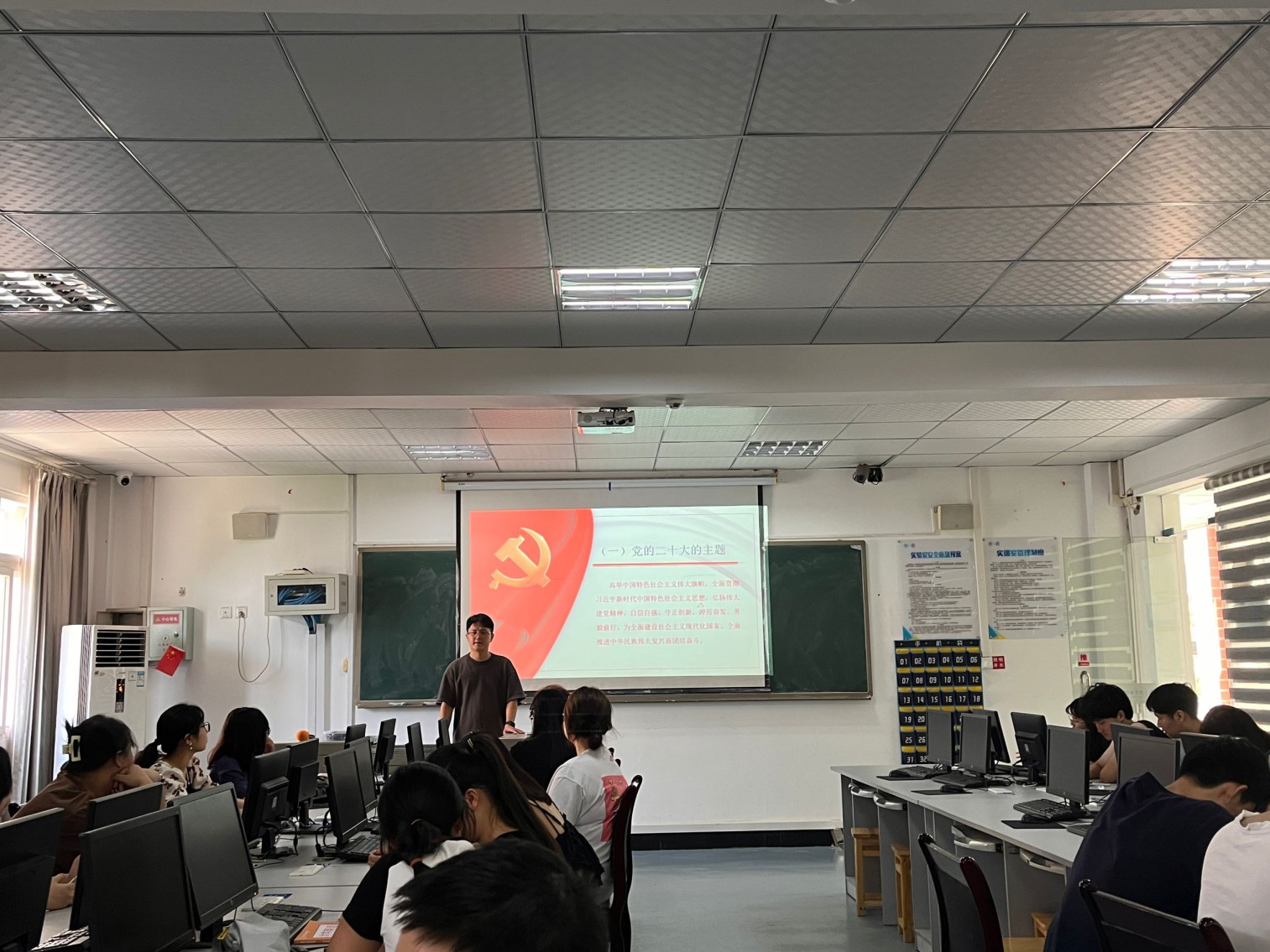 为深入学习贯彻习近平新时代中国特色社会主义思想和党的二十大精神,把力量凝聚到落实立德树人根本任务,提高广大党员的思想理论水平和工作实践能力,2023年6月13日,人工智能学院党总支第三党支部书记吴勇帑以“党的二十大精神解读”为主线,在信科楼507教室为支部党员师生上专题党课。 吴勇帑同志从“深学细悟大会精神,主动担当历史使命”、“坚持党的领导,以党建引领中心工作”、“积极回应人民期待,践行执政为民...