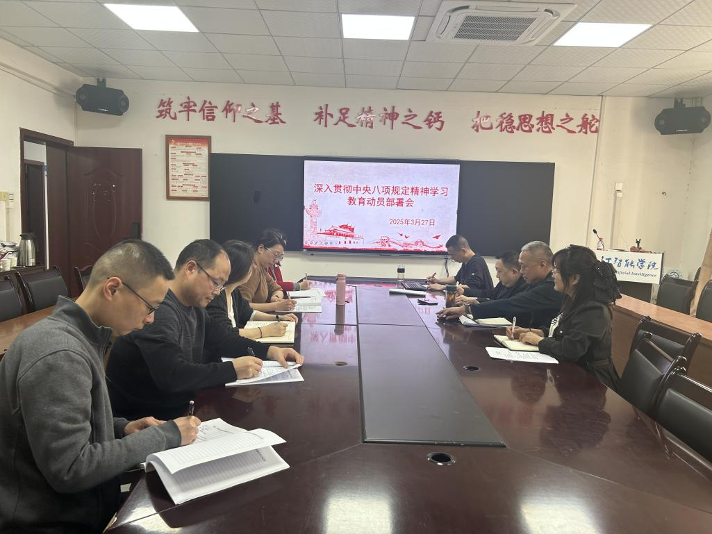 为进一步落实党的二十届三中全会精神,学习贯彻习近平总书记关于加强党的作风建设的重要论述精神,纵深推进全面从严治党,根据学校党委有关要求, 3月26日,人工智能学院党总支在信科楼503,开展深入贯彻中央八项规定精神学习教育启动会。会议由党总支书记、院长熊泽明主持,总支委员、二级学院中干、支部书记等9人参加。 会上,总支宣传委员杨勇组织学习了中央党的建设工作领导小组召开会议研究部署深入贯彻中央八项规定精神学习教育工作、...