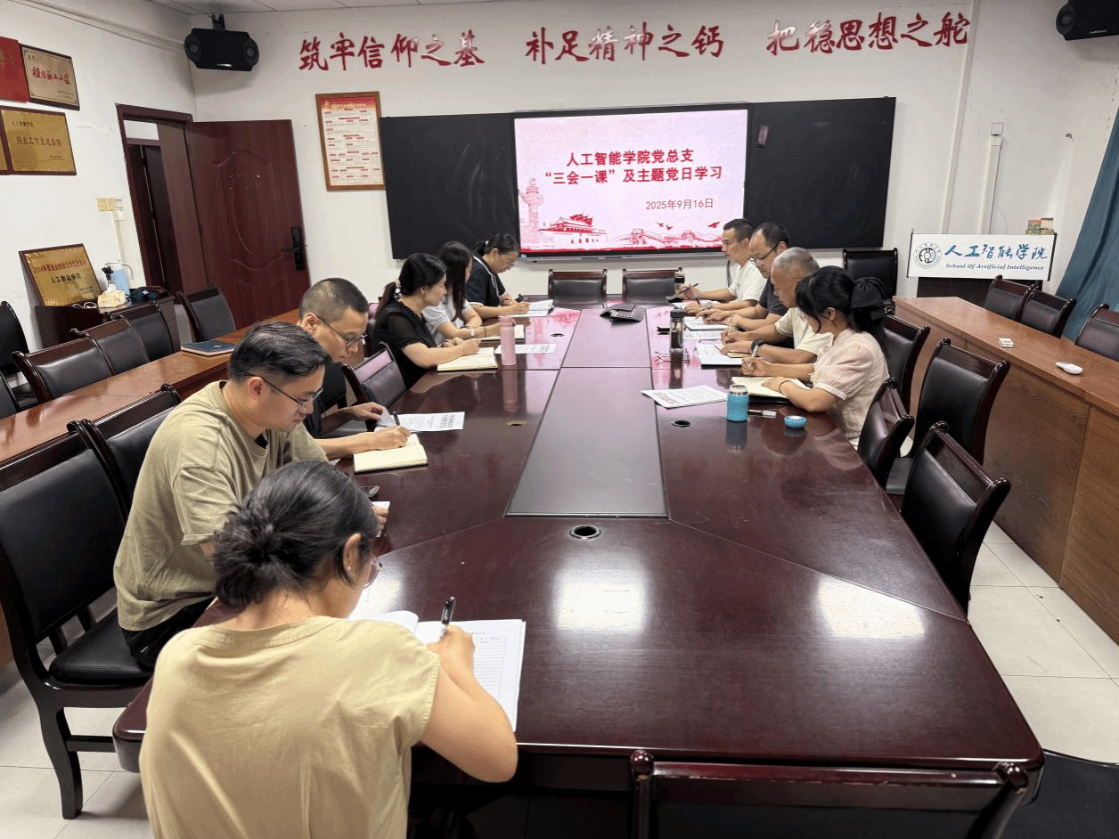 2025年9月16日,人工智能学院党总支第一党支部在信科楼503会议室开展了8-9月“三会一课”和主题党日学习。会议由支部书记袁枫主持,支部11名教师党员参加。支部宣传委员齐丽媛同志组织与会同志学习了以下内容:习近平总书记在山西考察时的重要讲话精神、习近平总书记在中央城市工作会议上的重要讲话精神、习近平总书记在听取西藏自治区党委和政府工作汇报时的重要讲话精神、习近平:弘扬伟大抗战精神,向着中华民族伟大复兴的光辉彼岸奋勇前进、...