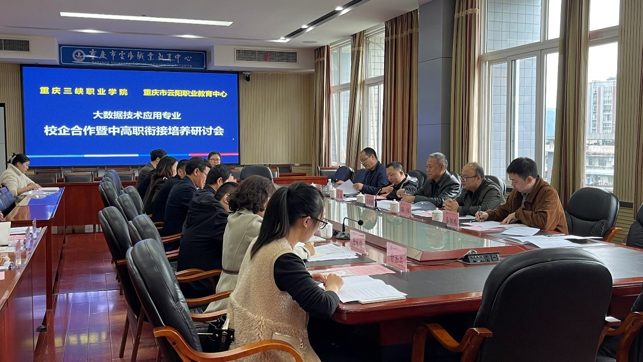 2022年10月28日,人工智能学院院长熊泽明带领下,我校6名教师前往重庆市云阳职业教育中心,针对对大数据技术专业中高职衔接事宜进行研讨。会议由熊泽明主持。云阳职教中心党委书记、校长刘红及云阳职教中心相关处室、专业负责人、专业教师共20余人参加了本次研讨会议。 会议伊始,刘红介绍了云阳职教中心近年来的建设发展情况以及与重庆三峡职业学院大数据技术专业中高职衔接培养合作进展情况。并就此次交流活动的目的做...