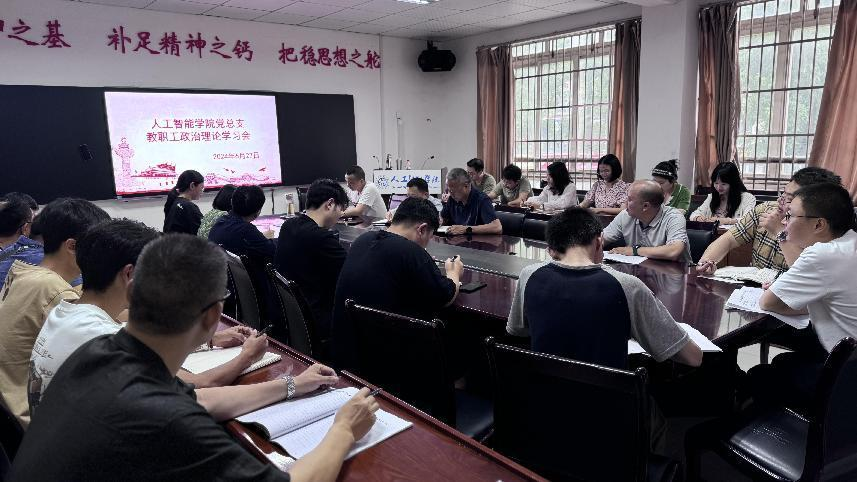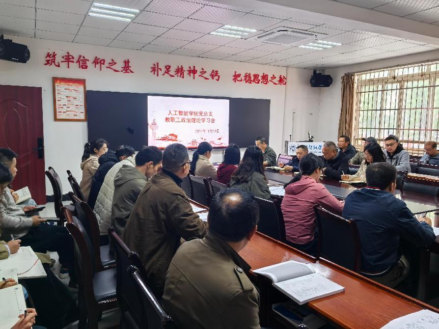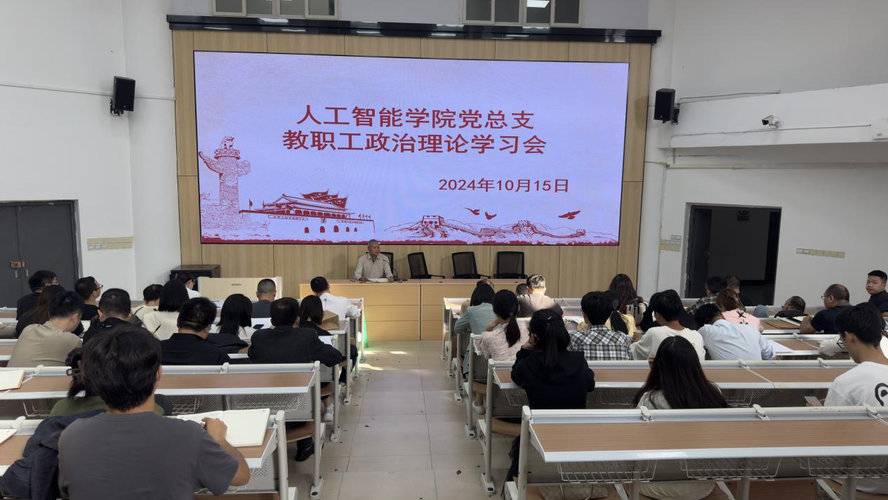 2024年11月19日,人工智能学院党总支在信科楼503开展全院教职工11月政治理论学习教育专题会。会议由人工智能学院党总支书记熊泽明主持,全院教职工及华晟经世产业学院教师团队50余人参加。 会上总支宣传委员杨勇领学了七项内容。具体包含:习近平总书记在庆祝中华人民共和国成立75周年招待会上的重要讲话精神、习近平在省部级主要领导干部学习贯彻党的二十届三中全会精神专题研讨班开班式上发表重要讲话强调 深入学习贯...