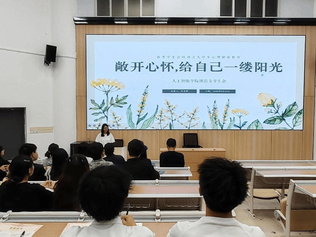 ——“聚焦青年成长,共悟思想伟力”为提升大学生心理健康水平,引导广大青年学子深刻领悟习近平总书记关于青年工作的重要思想,增强我院学生干部心理健康意识,营造积极向上,和谐友爱的工作氛围,2025年5月14日下午17点,人工智能学院“聚焦青年成长,共悟思想伟力”主题培训在信科楼220举行。本次培训由学生会主席李艾萍主讲,学院学生会全体学生干部参加培训。培训以“拥抱心灵阳光,书写青春华章”为主题,强调了心理健康对于青年成长的重要性,...