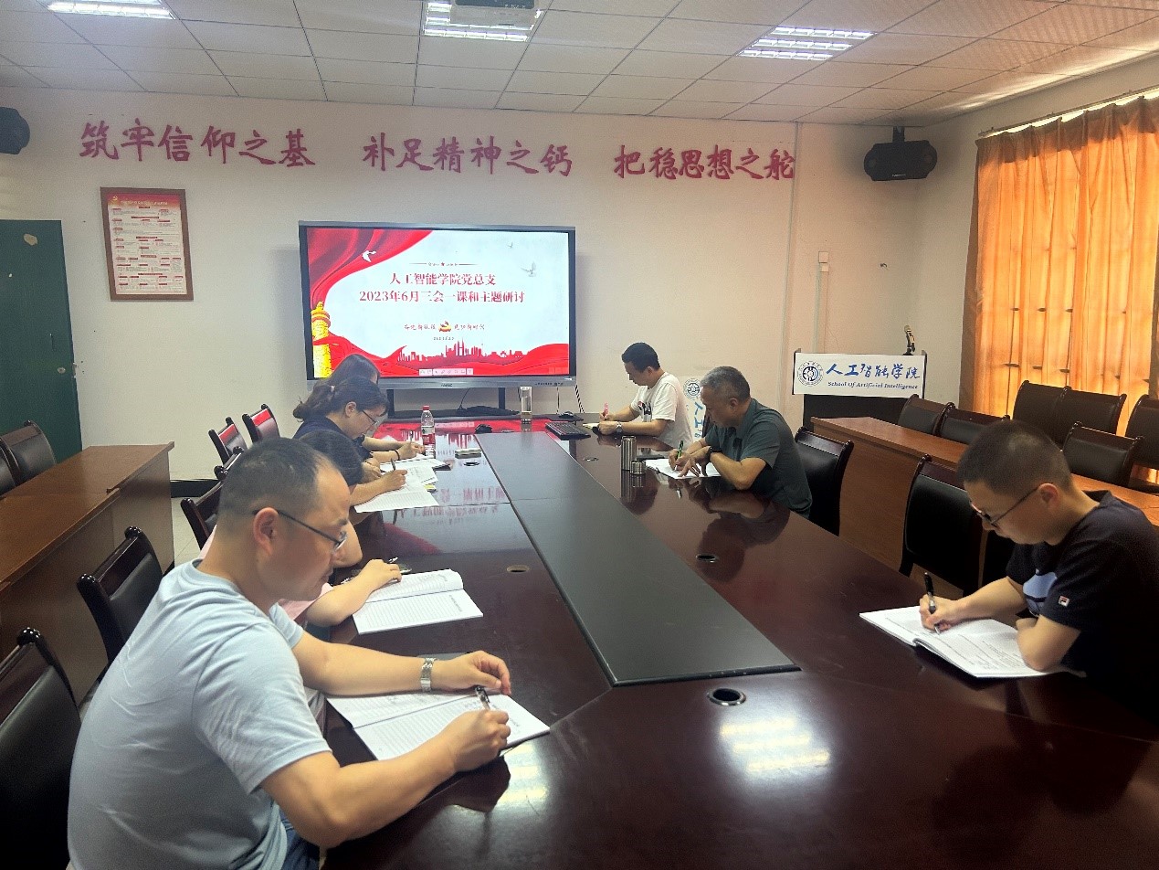 2023年6月20日,人工智能学院党总支,在信科楼503开展6月“三会一课”和主题党日学习教育专题会。会议由人工智能学院党总支书记熊泽明主持,总支委员、支部书记等7人参加。 会议传达学习了中共中央关于在全党深入开展学习贯彻习近平新时代中国特色社会主义思想主题教育的意见、习近平总书记关于“以学增智”内涵的阐述、习近平总书记关于树立正确政绩观的重要论述、习近平总书记给中国农业大学科技小院的同学们的回信、...