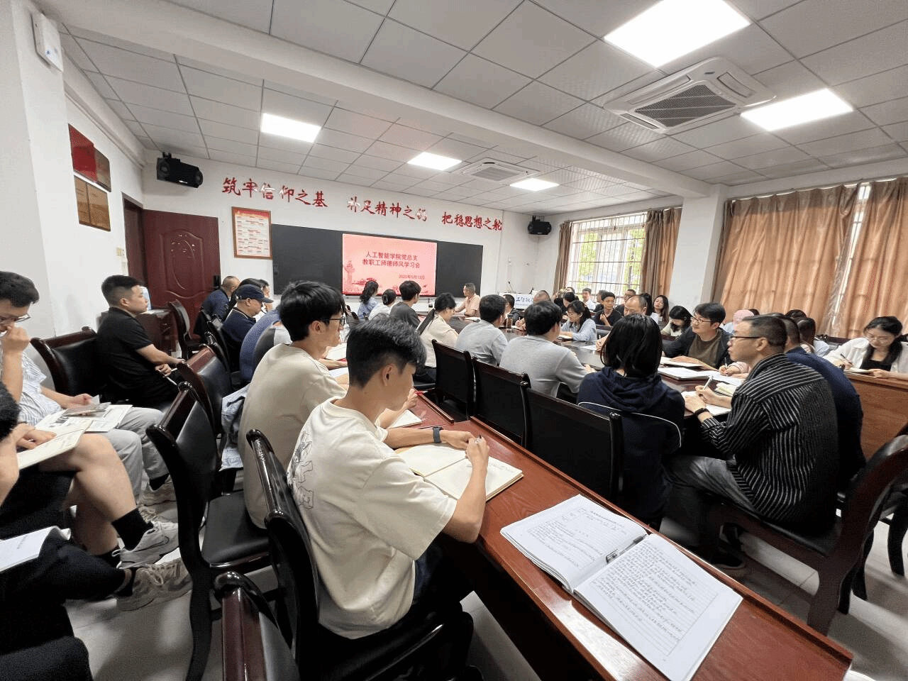 为进一步增强全院教职工的政治素养,统一思想认识,强化理论武装,2025年10月21日,人工智能学院党总支在信科楼504开展全院教职工10月政治理论学习教育专题会。会议由人工智能学院党总支书记、院长熊泽明主持,全院教职工50余人参加。会上,杨勇同志领学了习近平在听取新疆维吾尔自治区党委和政府工作汇报时强调 完整准确全面贯彻新时代党的治疆方略 努力建设团结和谐、繁荣富裕、文明进步、安居乐业、生态良好的社会主义现代化新疆,...
