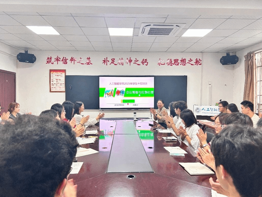 为切实提升学生干部会务组织能力与应急处突水平,提升会议管理与突发状况处置能力。2025年5月28日16点30分,人工智能学院团总支学生会先锋班“会议筹备与应急处理”主题培训在信科楼503顺利开展。本次课程由人工智能学院专职组织员崔艳老师主讲。培训伊始,崔艳老师以会议全流程为主线,系统梳理了会前筹备、会中管理、会后总结的关键环节。她强调,会前需做好议程规划、场地布置、人员通知等基础工作,其中细节把控尤为重要,如座次安排、...