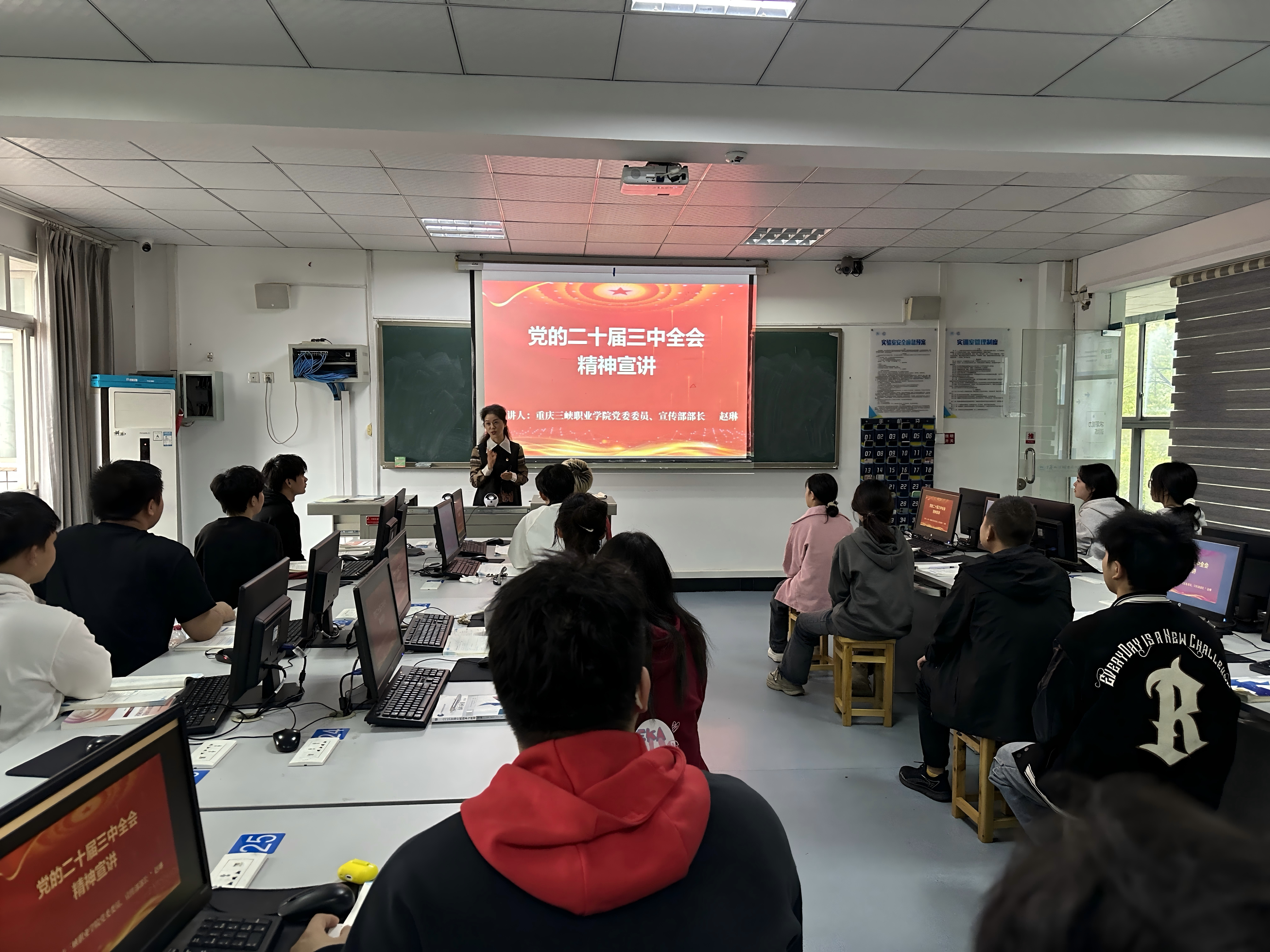 按照学院党委关于印发《学习贯彻党的二十届三中全会精神宣讲方案》安排,2024年10月12日,学院党委委员、宣传部部长赵琳在信科楼509教室,为人工智能学院党总支师生宣讲党的二十届三中全会精神。会议由人工智能学院党总支副书记丁翠娟主持,学院50余名师生参加。 赵琳部长从这次全会是在以中国式现代化全面推进强国建设、民族复兴伟业的关键时期召开的一次十分重要的会议、深入学习领会习近平总书记在党的二十届三中全...