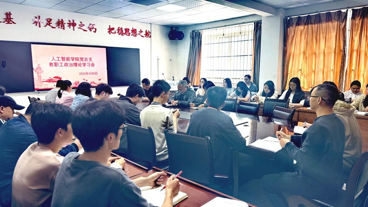 为进一步增强全院教职工的政治素养,统一思想认识,强化理论武装,2025年4月8日,人工智能学院党总支在信科楼503开展全院教职工4月政治理论学习教育专题会。会议由人工智能学院党总支书记、院长熊泽明主持,全院教职工50余人参加。 会上,杨勇同志领学习近平在贵州考察时重要讲话精神(2025年03月19日)、习近平在云南考察时重要讲话精神(2025年3月19日至20日)、《中央八项规定及其实施细则》、清风正气满乾坤——习近平总书记引领全党锲而不舍贯彻落实中央八项规定精神、...