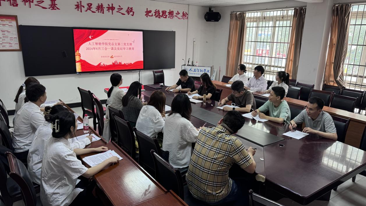 2023年6月13日,人工智能学院党总支第三党支部在信科楼507教室开展6月“三会一课”及主题党日学习。会议由支部书记吴勇帑主持,支部16名党员师生参加。 支部宣传委员蒲彦钧组织与会人员学习了中共中央关于在全党深入开展学习贯彻习近平新时代中国特色社会主义思想主题教育的意见、习近平总书记关于“以学增智”内涵的阐述、习近平总书记关于树立正确政绩观的重要论述、习近平总书记给中国农业大学科技小院同学的回信、习...