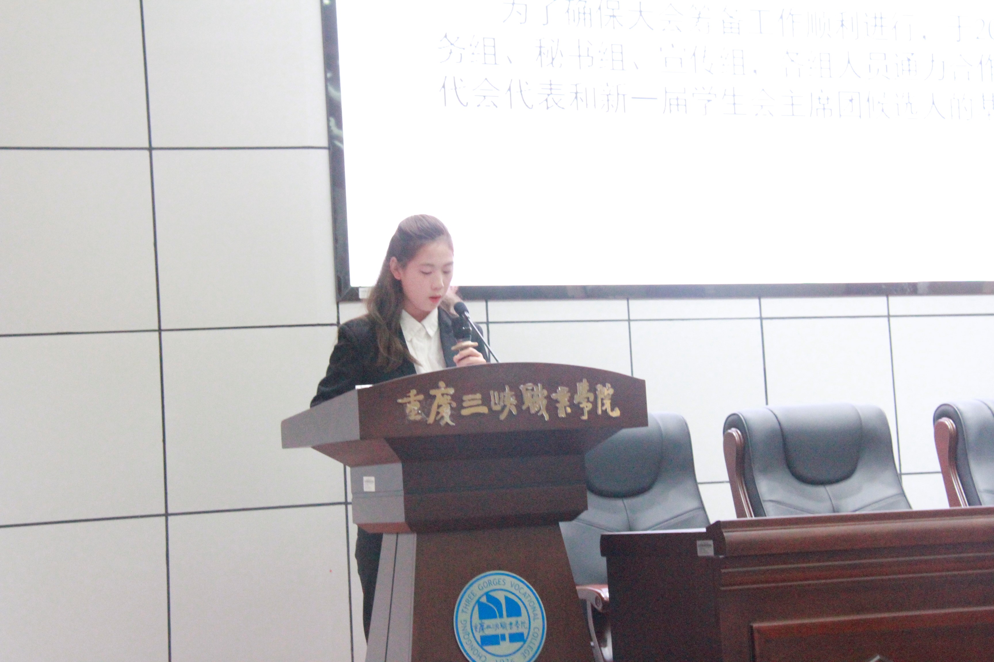 大会在嘹亮的国歌声中拉开帷幕。由我院第二党支部书记雷蕾宣读共青团重庆三峡职业学院委员会同意召开《人工智能学院第十二次学生代表大会》的批复。