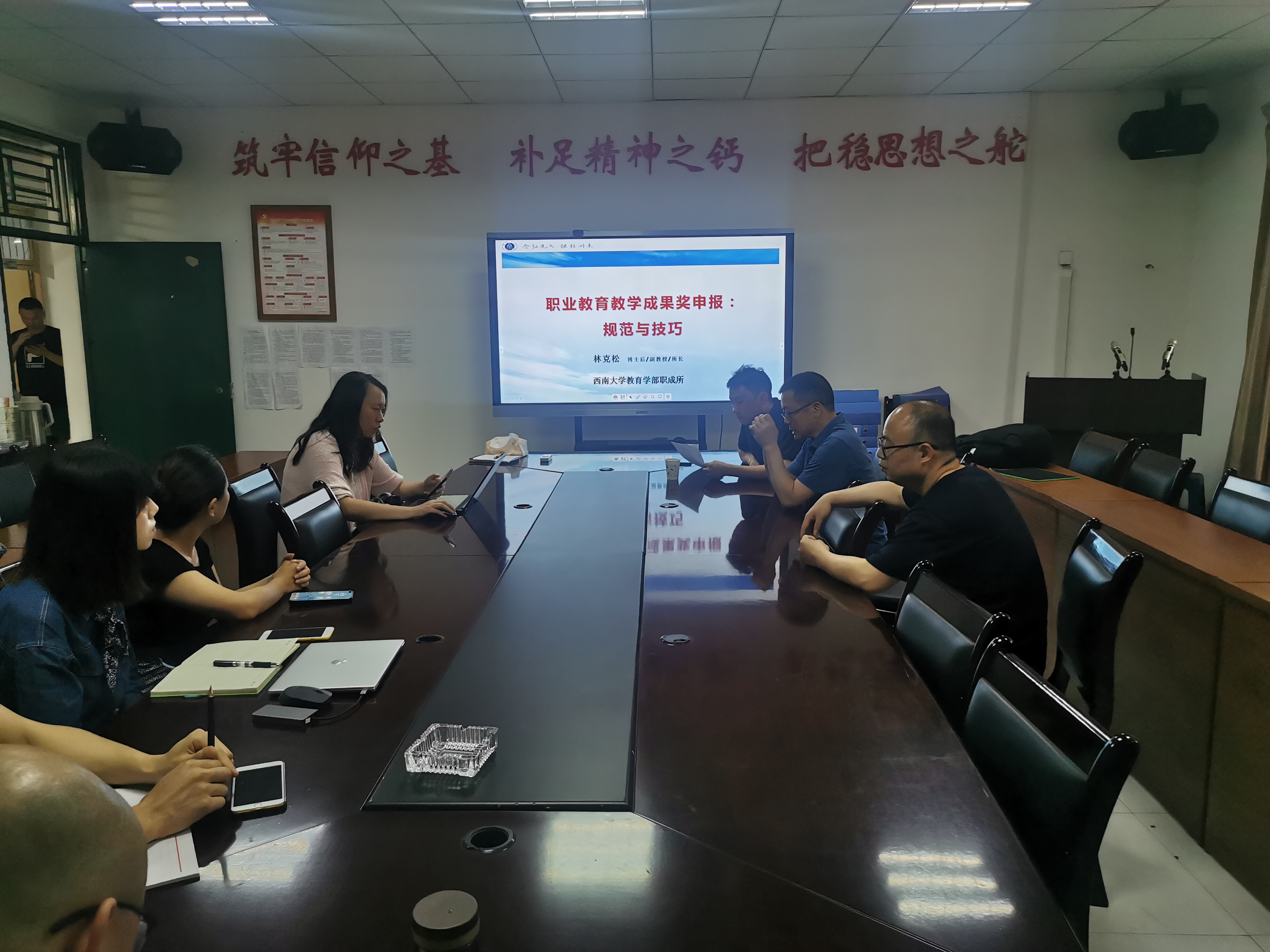 2021年6月9日,西南大学教育学部职业教育与成人教育研究所所长林克松博士后应重庆三峡职业学院邀请来校就教学成果申报工作进行了专题指导。教务处相关领导,教学成果奖申报人及成果奖主要完成人参加会议,专题会在信科楼501举行,会议由教务处袁德梽处长主持。