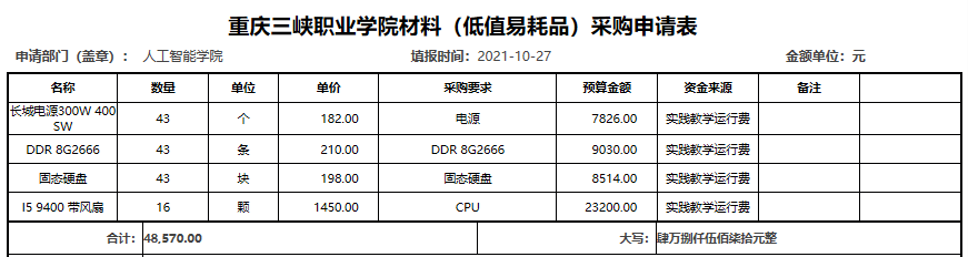 重庆三峡职业学院人工智能学院技能培训电子耗材 项目采用网上询价方式进行采购。 欢迎符合资格要求并有供货能力的供应商踊跃报价。