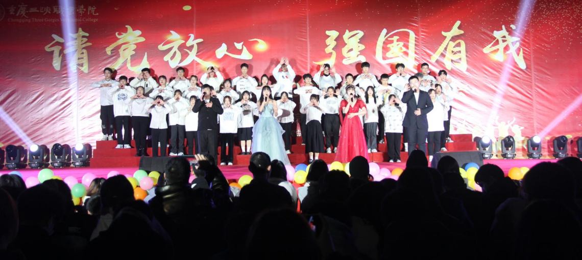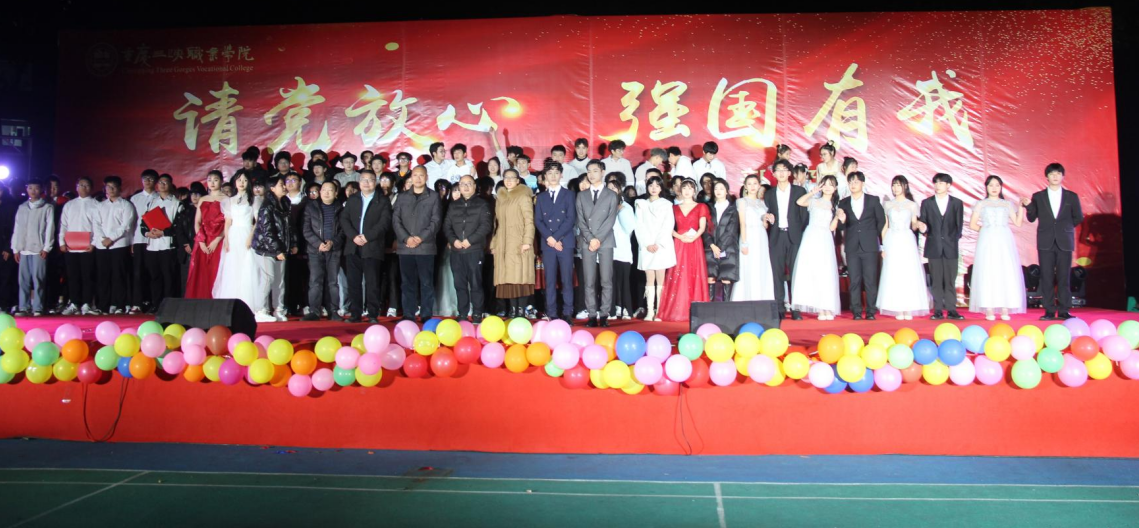 为庆祝中国共产党成立100周年,深入贯彻落实党的十九届六中全会精神,同时欢迎2021级新生,祝福新年。2021年12月3日下午6点半,由重庆三峡职业学院人工智能学院主办,人工智能学院团总支学生会承办的“请党放心,强国有我”2021年迎新晚会在我校羽毛球场隆重举行。重庆三峡职业学院党委委员、统战部杨吉林部长、人工智能学院党总支书记、院长熊泽明、党总支副书记骆伟、副院长余淼以及人工智能学院部分师生、各二级学院学生代表莅临本次晚会。