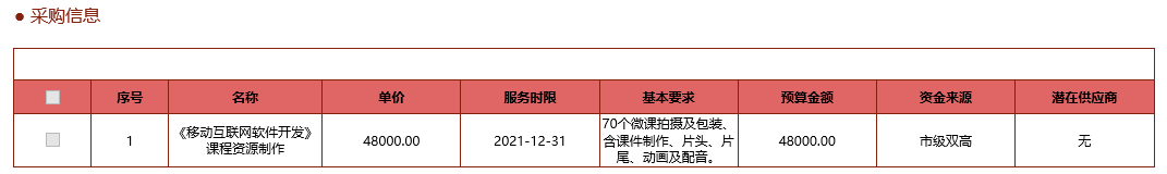 一、采购项目名称及数量 (项目总预算:48000.00 元)