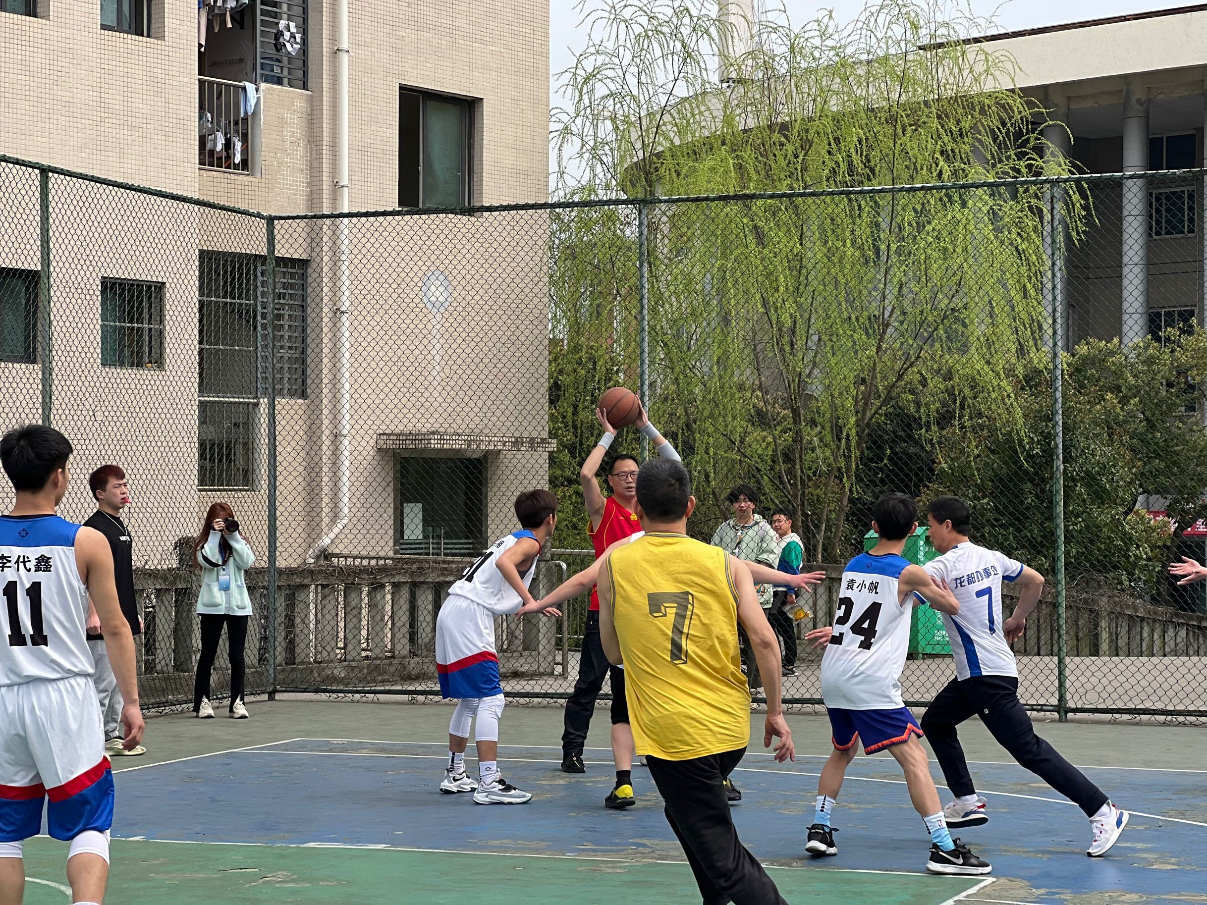 12点30分,人工智能学院教师队与人工智能学院学生队相继登场。赛场上,同学们充分发挥了团结协作、勇于拼搏的精神;教师们也展现了飒爽英姿,成为了校园的一道亮丽风景线。经过一个小时的激烈角逐,学生队以58:52的比分战胜了教师队。