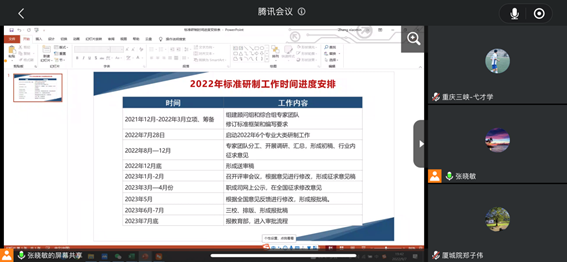 重庆三峡职业学院弋才学老师参加了计算机大类高职的软件技术、大数据技术,职教本科的软件工程技术等标准建设研制专家组工作并线上出席本次会议,与全国知名职业教育专家,共同研讨标准建设工作,制定工作计划。