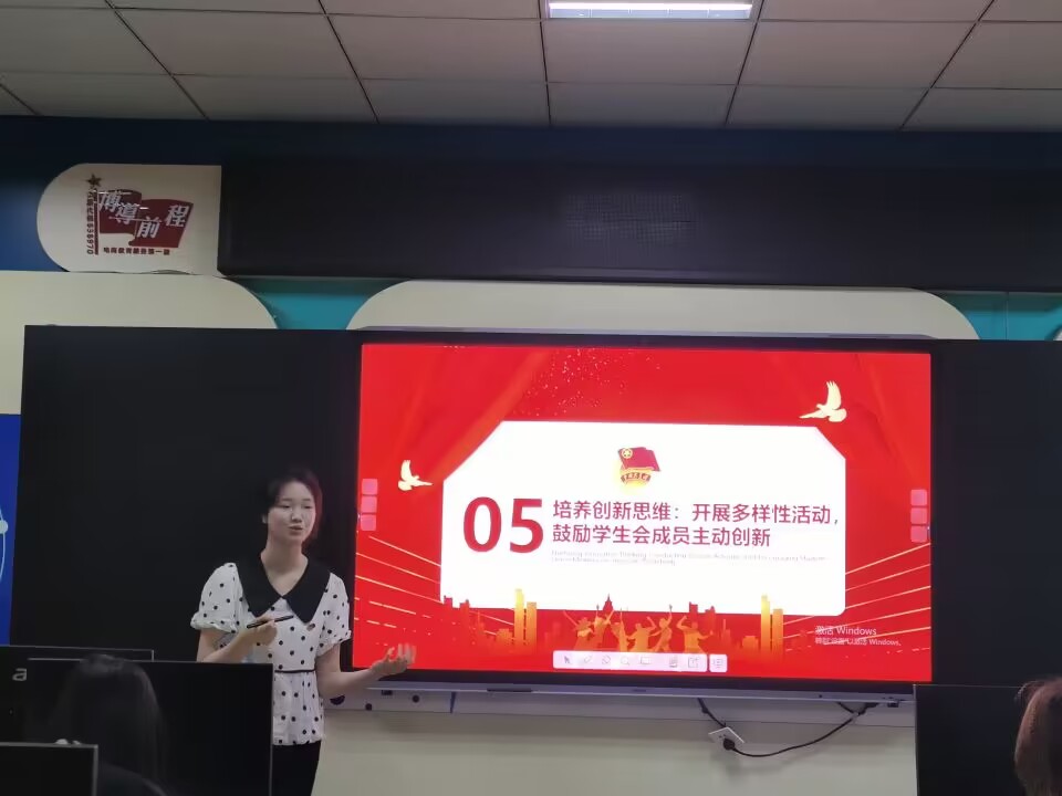 陈学丹在课程总结中指出,人工智能学院团总支学生会全体成员要充分发挥学生干部带头作用、桥梁作用、凝聚作用,争做一名新时代的优秀学生干部。