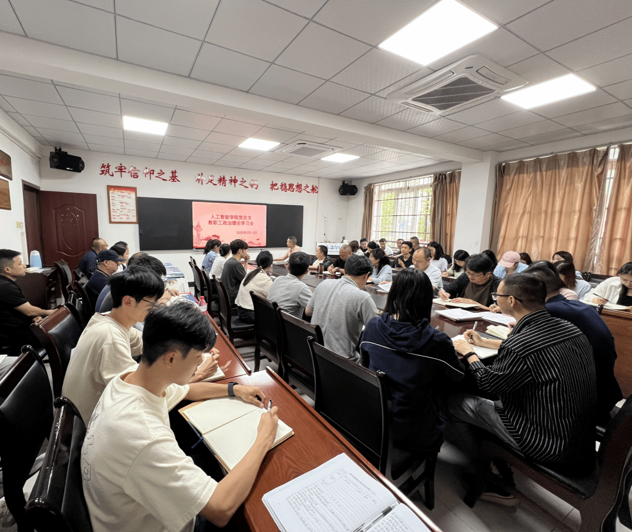 为进一步增强全院教职工的政治素养,2025年5月13日,人工智能学院党总支在信科楼503开展全院教职工5月政治理论学习教育专题会。会议由人工智能学院党总支书记、院长熊泽明主持,全院教职工50余人参加。