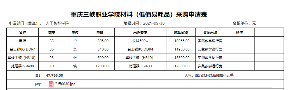 重庆三峡职院学院人工智能学院电子耗材网上询价公告