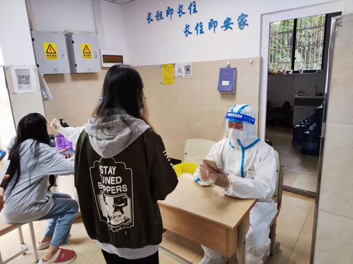 学校实行封闭管理后,为切实保障学生安全,我院学工队伍勇挑重担,保证学生全员核酸摸排的“一个不漏”,按要求落实“日报告”“零报告”,精准摸排学生数据,并按时上报。老师们还积极投身于学校核酸查验工作中,成为校园中最美的“大白”和“蓝朋友”。