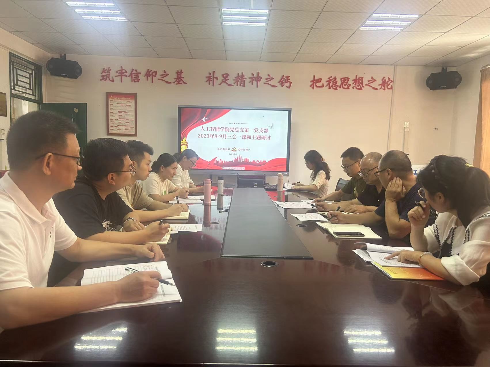 2023年9月13日13:30,人工智能学院党总支第一党支部在信科楼503会议室开展了主题教育专题组织会。会议由支部书记袁枫主持,支部11名教师党员参加,组织部方淑兰,总支委杨勇列席会议。