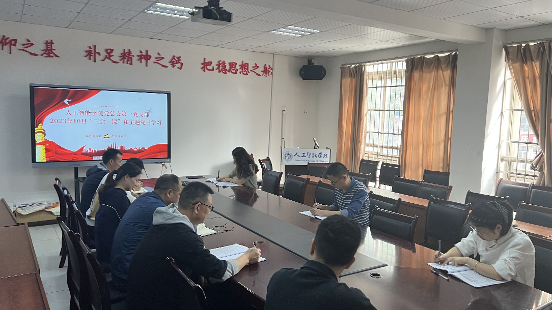 2023年10月17日14:30,人工智能学院党总支第一党支部在信科楼503会议室开展了10月“三会一课”及主题党日学习。会议由支部书记袁枫主持,支部9名教师党员参加。