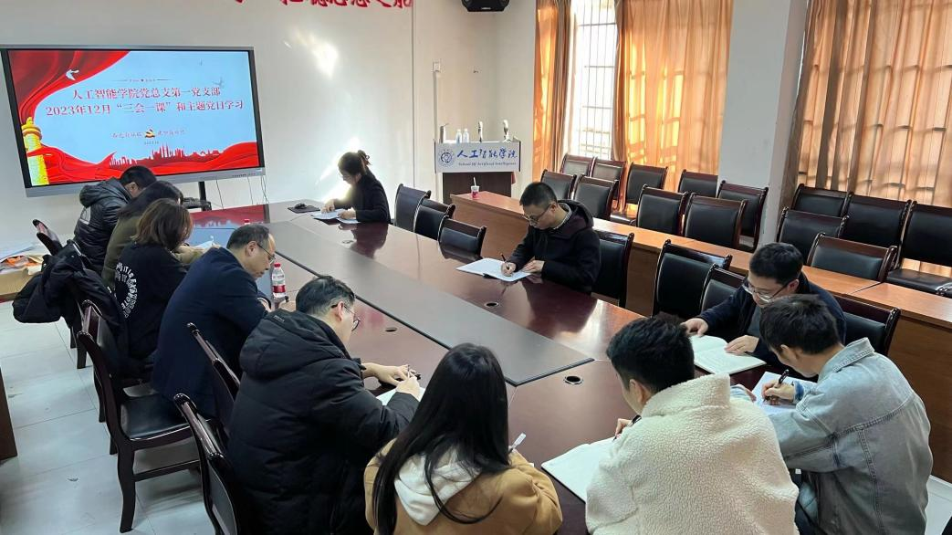 2023年12月5日14:30,人工智能学院党总支第一党支部在信科楼503会议室开展了12月“三会一课”及主题党日学习。会议由支部书记袁枫主持,支部11名教师党员参加。