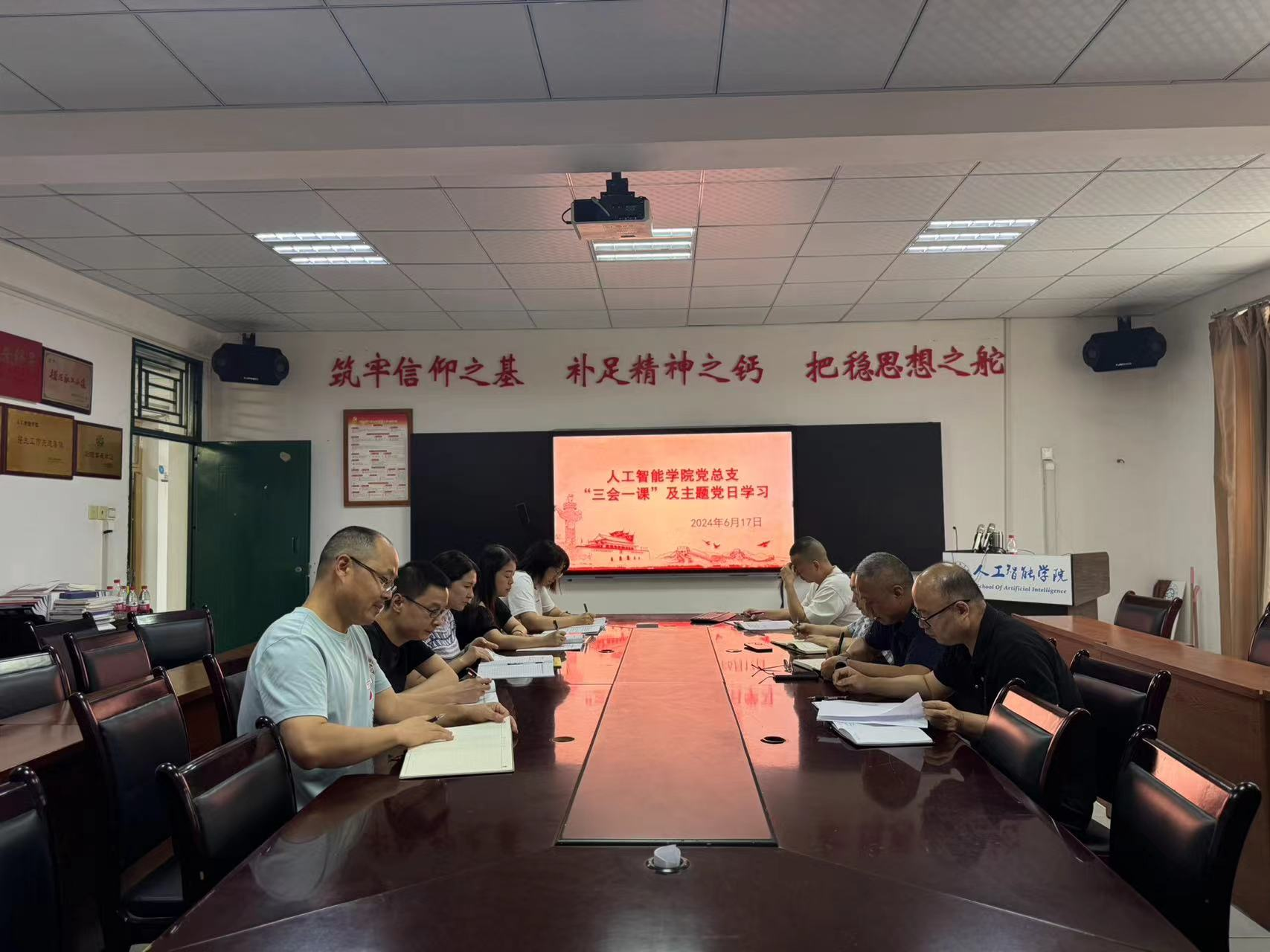 2024年6月17日,人工智能学院党总支在信科楼503开展6月“三会一课”和主题党日学习教育专题会。会议由人工智能学院党总支书记熊泽明主持,总支委员、二级学院中干、支部书记等9人参加。