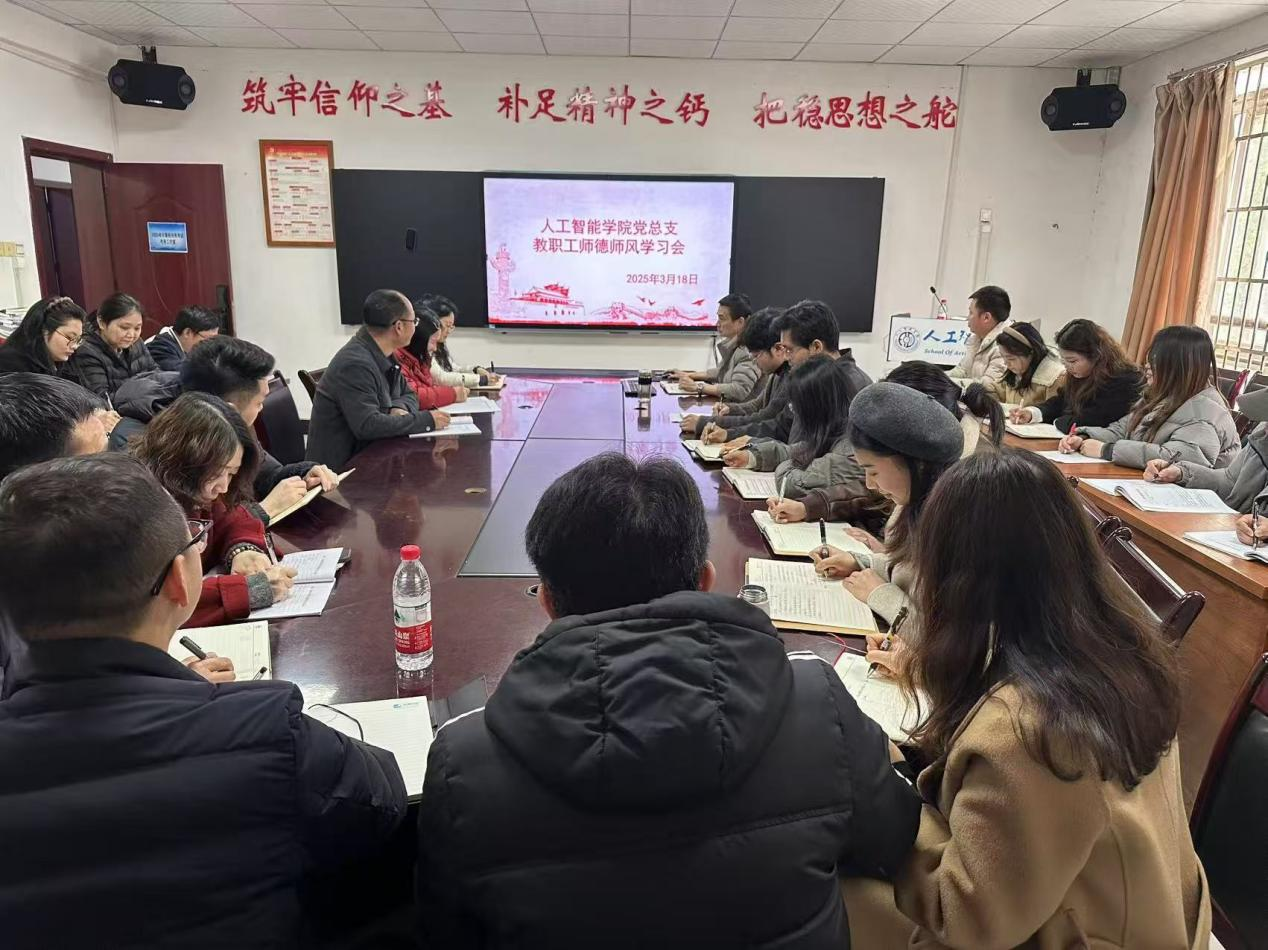 2025年3月18日,人工智能学院党总支在信科楼503召开2-3月师德师风暨警示教育专题学习会,本次会议全体教职员工参会,会议由党总支书记熊泽明主持。