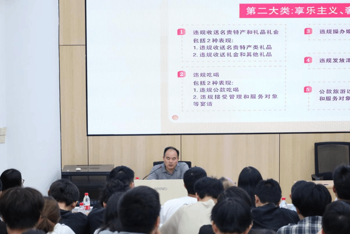 为深入贯彻中央八项规定精神学习教育,按照学校党委部署,6月10日下午,学校党委委员、纪委书记、监察专员米密在信科楼220教室讲深入贯彻中央八项规定精神学习教育专题党课。会议由人工智能学院党总支书记、院长熊泽明主持,学校纪检监察室党员、人工智能学院师生等180余人参加。