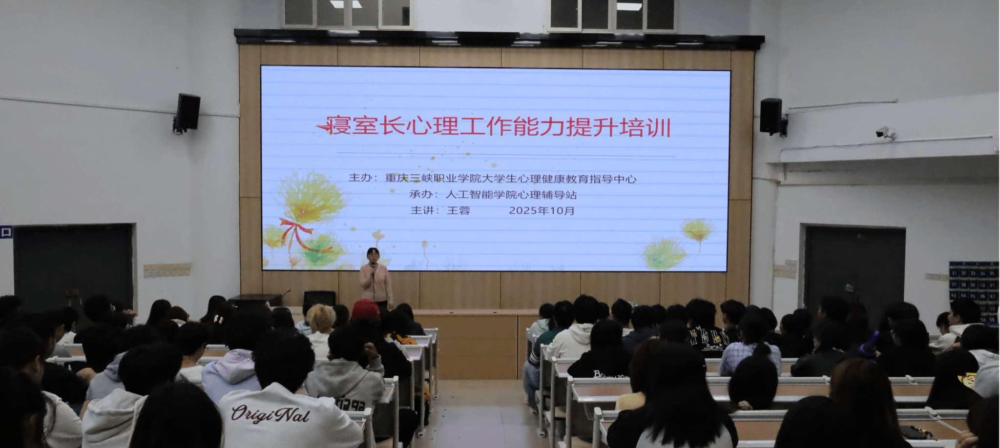 为进一步提升寝室长的心理工作专业能力,强化寝室 “心理关怀前哨站” 的核心功能,助力学院构建更为坚实的 “学院-班级-寝室” 三级心理关怀网络,2025 年 10 月 21 日,人工智能学院在信科楼 220 教室成功举办 “寝室长心理工作能力提升培训” 讲座。本次讲座由学院学工科长王蓉担任主讲人,学院全体班级心理委员及寝室长共同参与,为校园心理健康关怀工作注入新动能。