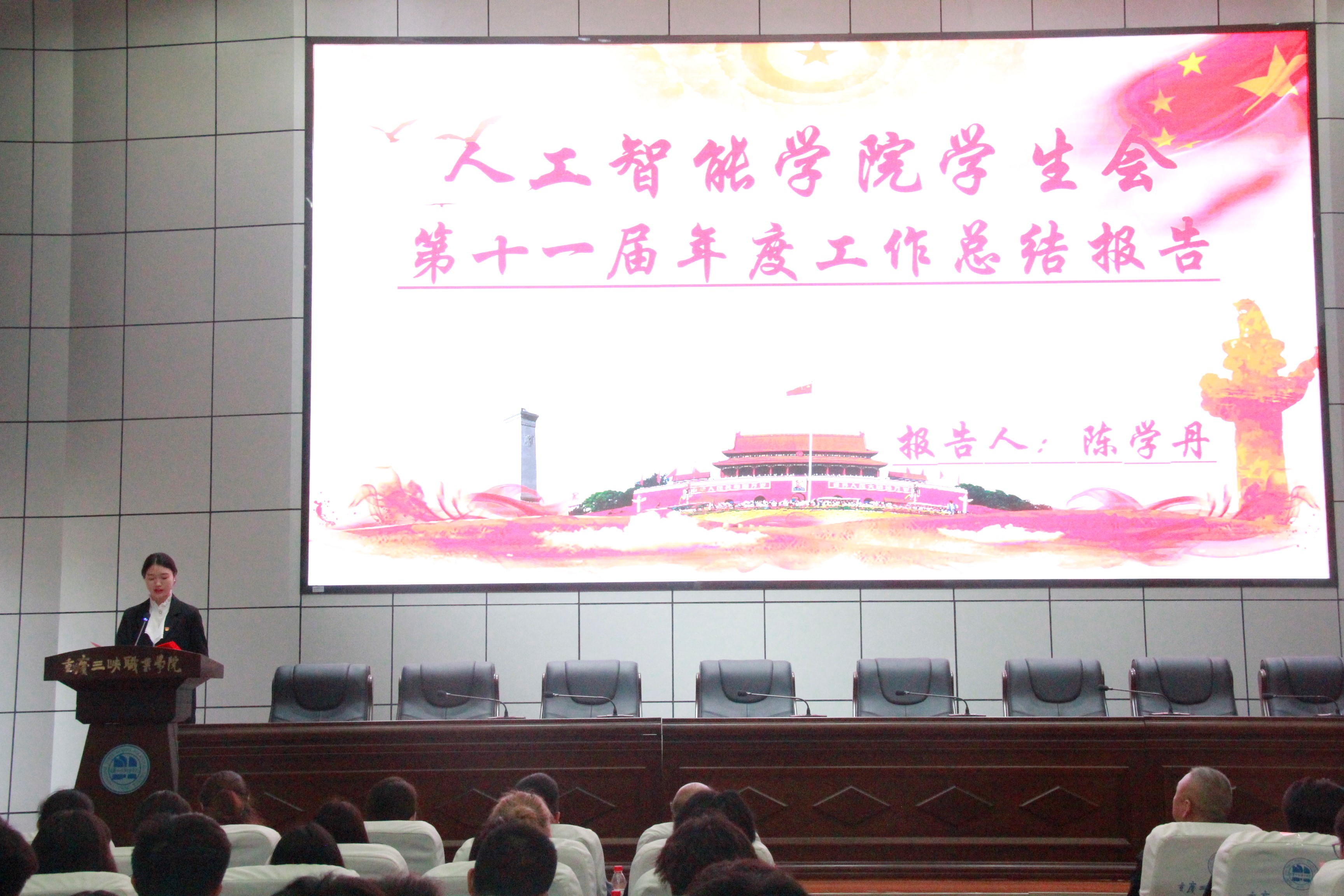 随后,人工智能学院第十一届学生会主席团成员陈学丹做第十一届学生会年度工作总结报告,报告中从坚定理论武装,强化思想引领;丰富社会实践,引领学生成长;聚焦时代热点,铸造文化品牌三个方面,全面总结2022年我院学生会取得的成绩,并分析了工作中存在的问题和解决方案,明确提出两步走的重点工作思路。