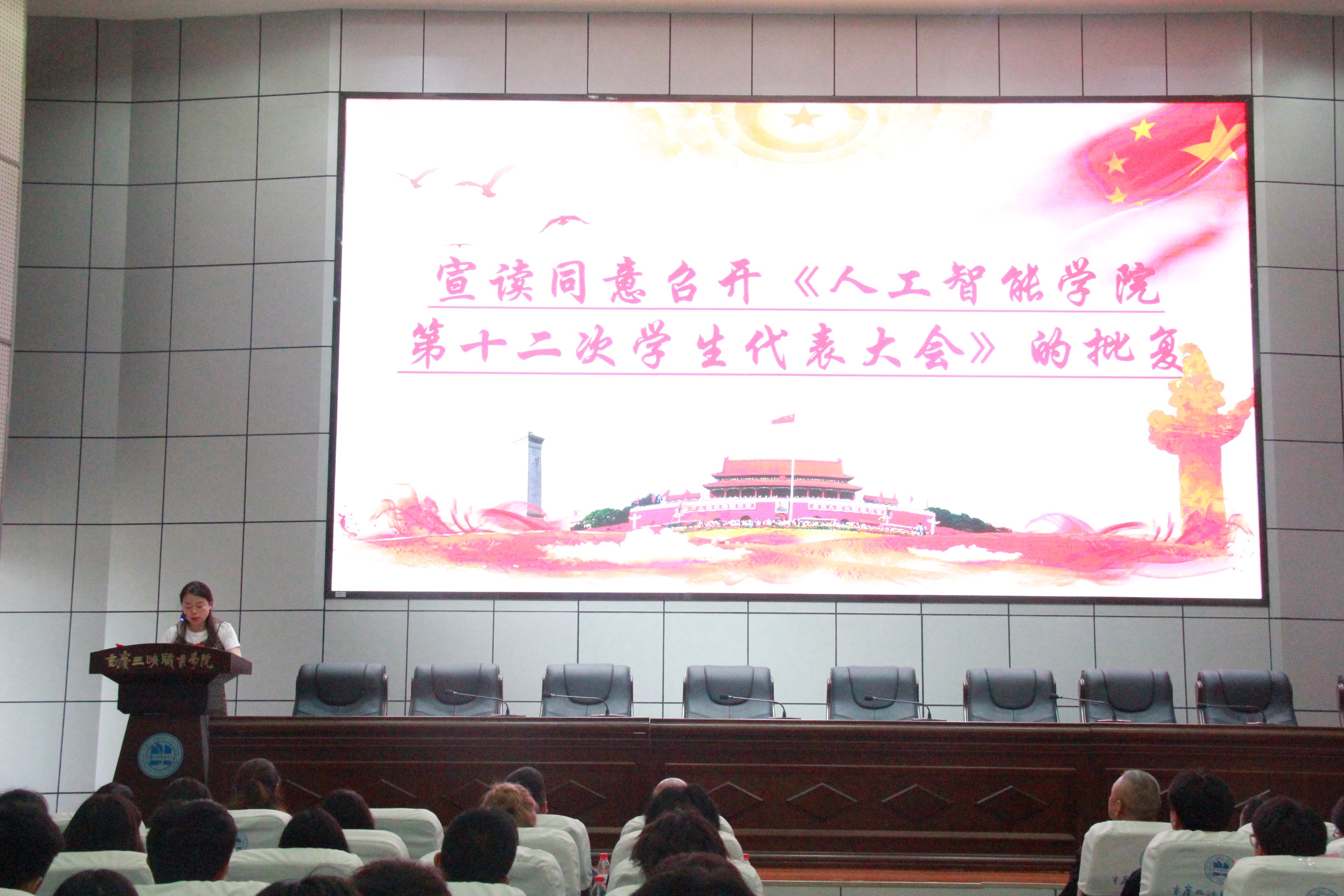 大会在嘹亮的国歌声中拉开帷幕。由我院第二党支部书记雷蕾宣读共青团重庆三峡职业学院委员会同意召开《人工智能学院第十二次学生代表大会》的批复。