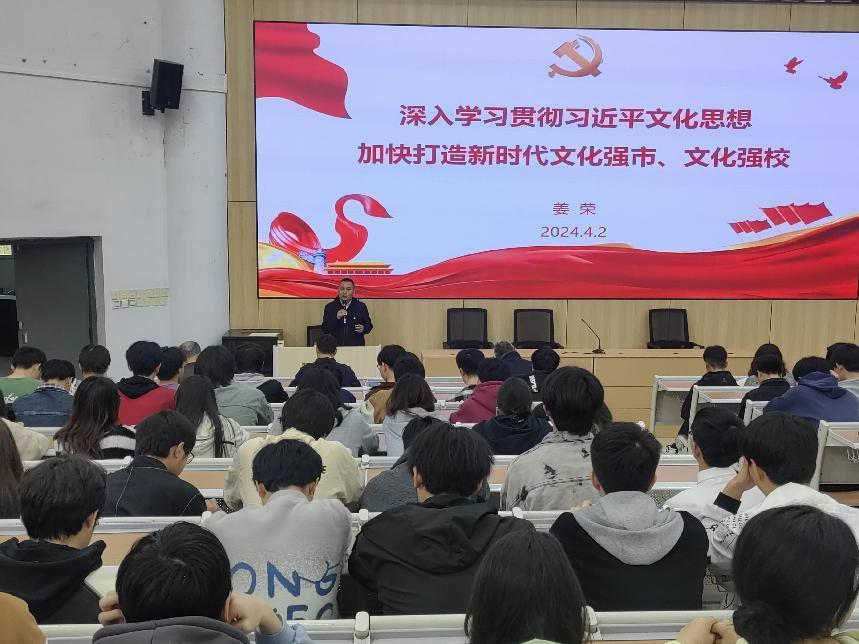 按照学院党委《关于开展“深入学习贯彻习近平文化思想 加快打造新时代文化强市”宣讲工作方案》安排,2024年4月2日,学院党委委员、宣传部部长姜荣在信科楼220教室,为人工智能学院党总支师生作专题宣讲。会议由人工智能学院党总支书记熊泽明主持,学院150余名师生参加。