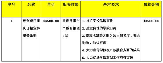 重庆三峡职业学院人工智能学院双创项目重庆日报宣传服务采购项目采用网上询价方式进行采购。欢迎符合资格要求并有相关项目宣传渠道和服务经验的供应商踊跃报价。