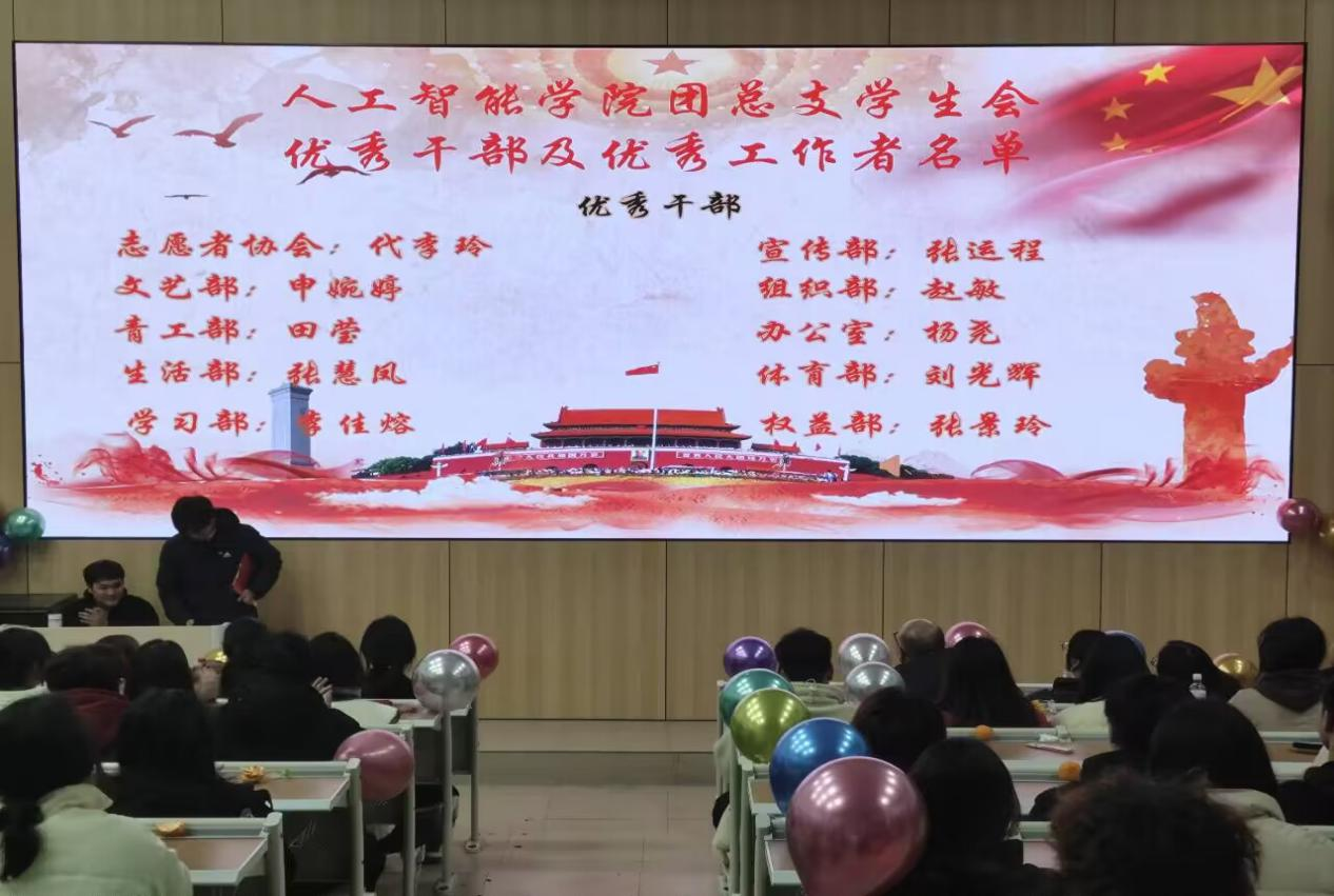 为贯彻党的二十大精神,组织动员广大同学在重点领域发挥生力军和突击队作用,提高大局贡献度。坚持以服务同学为宗旨,紧扣广大同学思想成长、精神文化、学业进步、社会融入等普遍需求,提升同学获得感、满意度。突出从严治会,坚持高标准、严要求,坚决防止脱离同学、官僚气、庸俗化等问题,维护清新阳光的组织形象。2024年1月5日18点,人工智能学院团总支学生会总结大会于信科楼220教室开展。人工智能学院党总支副书记骆伟、团总支书记张安汤、辅导员刘倩、范国星以及学生会全体成员参与本次总结大会。