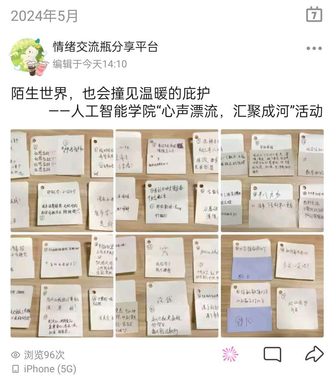 人工智能学院开展“心声漂流,汇聚成河”心理健康活动