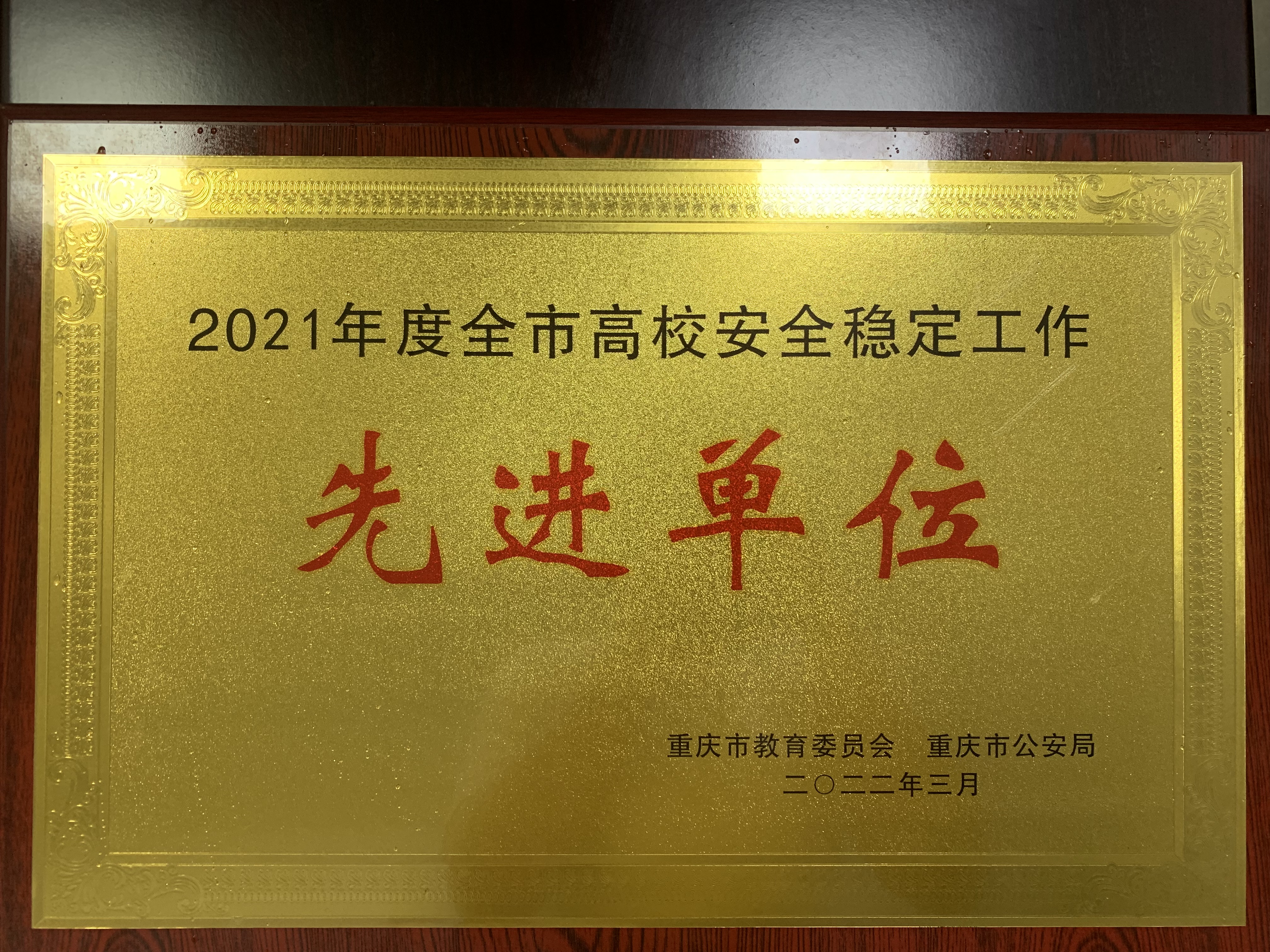 由于我院安全稳定工作扎实,成绩突出,被重庆市公安局、重庆市教育委员会授予2021度年全市高校安全稳定工作“先进单位”称号,这是我院继2020年度获全市高校安全稳定工作“先进单位”荣誉称号后再次获奖。同时,我院牛昌健、崔建兵和向攀3名同志荣获2021年度全市高校安全稳定工作“先进个人”称号。