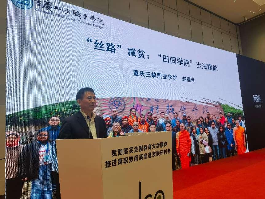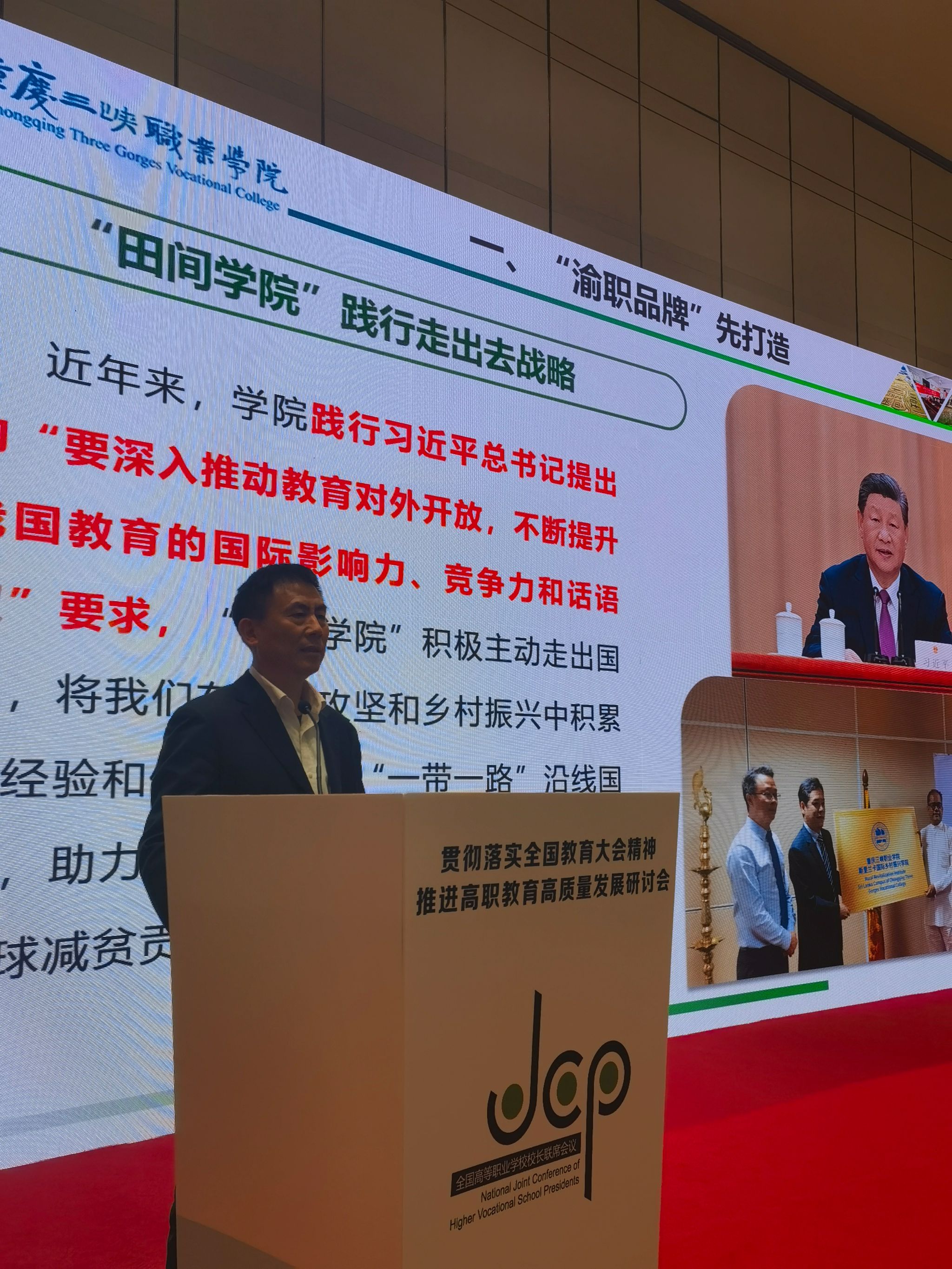 学校提供的《“丝路”减贫:“田间学院”出海赋能》是全国高等职业学校校长联席会遴选的“提升学校办学能力,提高服务发展支撑力”50个典型案例(一等奖)之一。在国际合作交流论坛上,赵福奎从“渝职品牌”先打造、“出海育人”助产能、“海外办学”显成效三个方面,全面介绍了学校“产科教”田间学院,在海外开展科教融汇、教随产出、产教同行等方面的情况,得到了与会代表的高度赞扬。