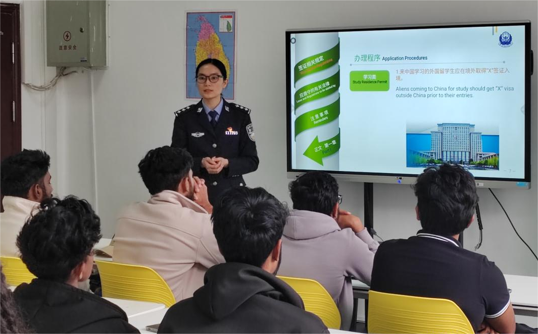 为进一步做好2024年秋季留学新生普法工作和安全教育,提升在华留学生出入境法律法规意识和安全防范能力,11月22日下午,万州区公安局出入境管理处李海燕警官和覃琴警官受学校邀请,专程到学校为我校斯里兰卡学历留学生开展法律法规宣传活动。