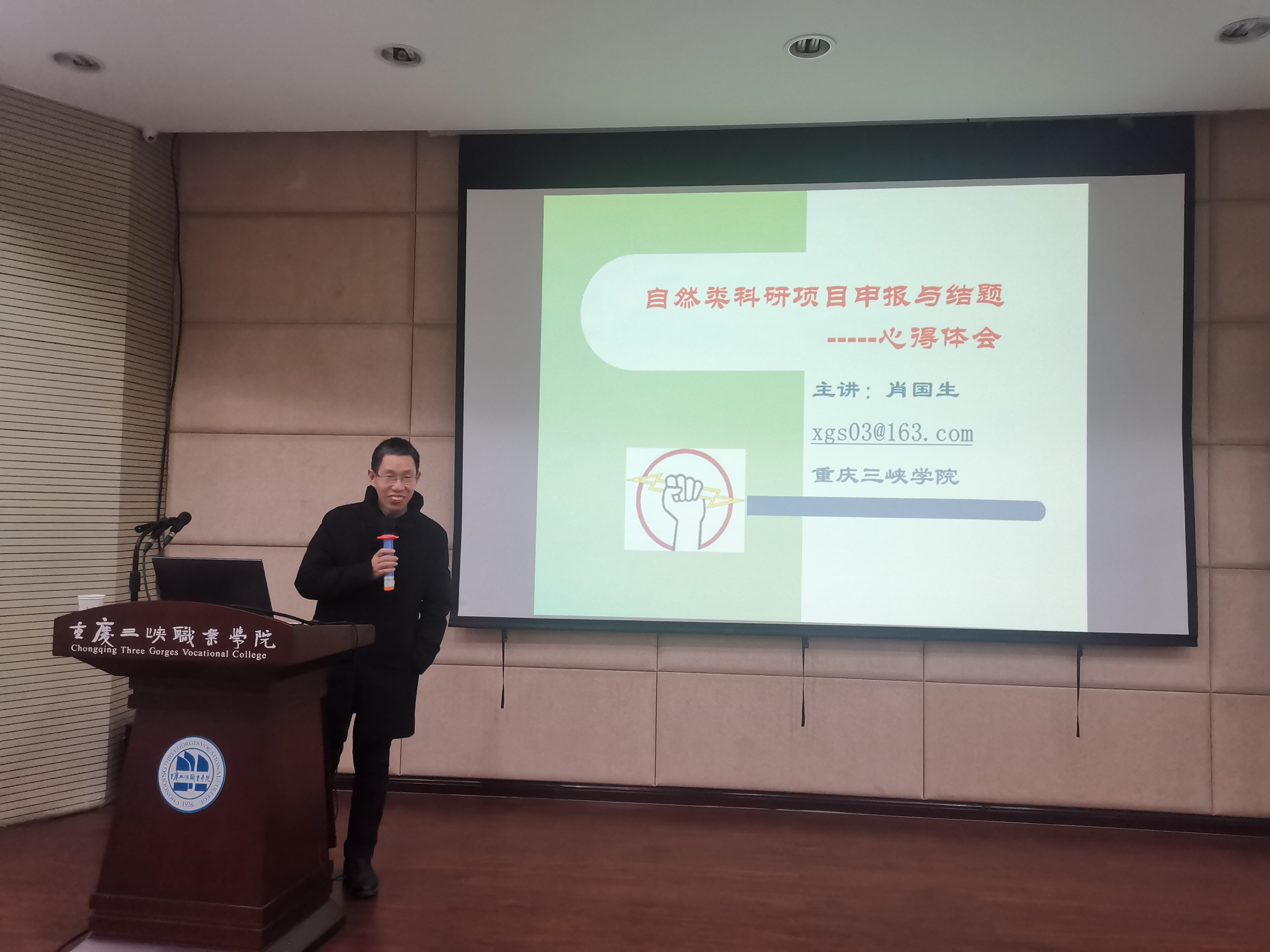 2021年1月7日下午,为全面提升我院重庆市自然基金项目的申报质量,提高全院教师申报市级项目的立项率,动物科技学院邀请了预防兽医博士、三峡学院生命学院院长肖国生教授指导双高科研项目建设,科研课题申报培训会在我校博雅楼207举行,会议由动物科技学院张传师书记主持,动物科技学院全体教职工参加了培训会。