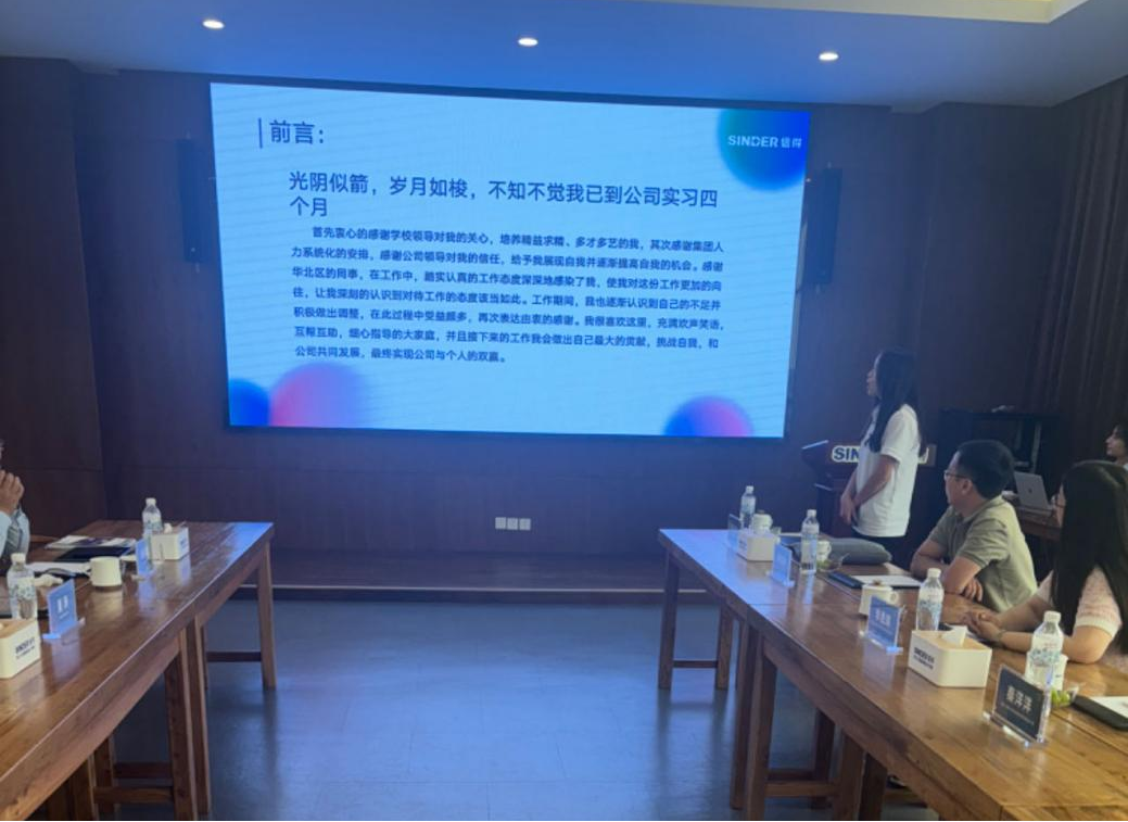 入职山东信得科技有限公司的优秀毕业生代表周雨芳分享了其成长经历,对母校和企业的培养表达了感谢,并对个人发展作了明确报告与规划,李思琪一行和信得科技有关领导均对其表达了殷切希望。