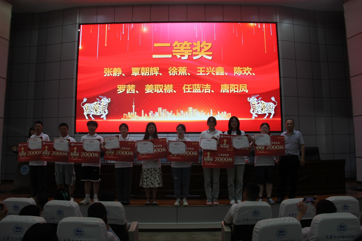 由重庆三峡职业学院动物科技学院副院长向邦全为二等奖获得学生颁奖。