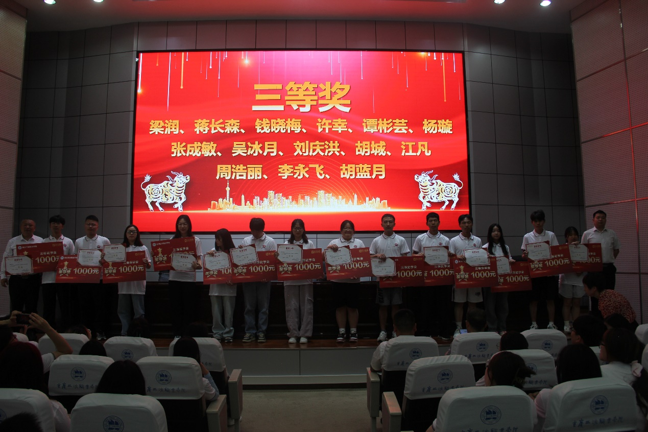 由正大集团重庆区生猪养殖事业助理副总裁李元华为一等奖获得学生颁奖。