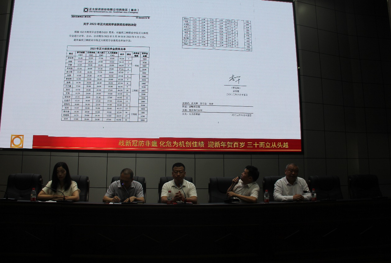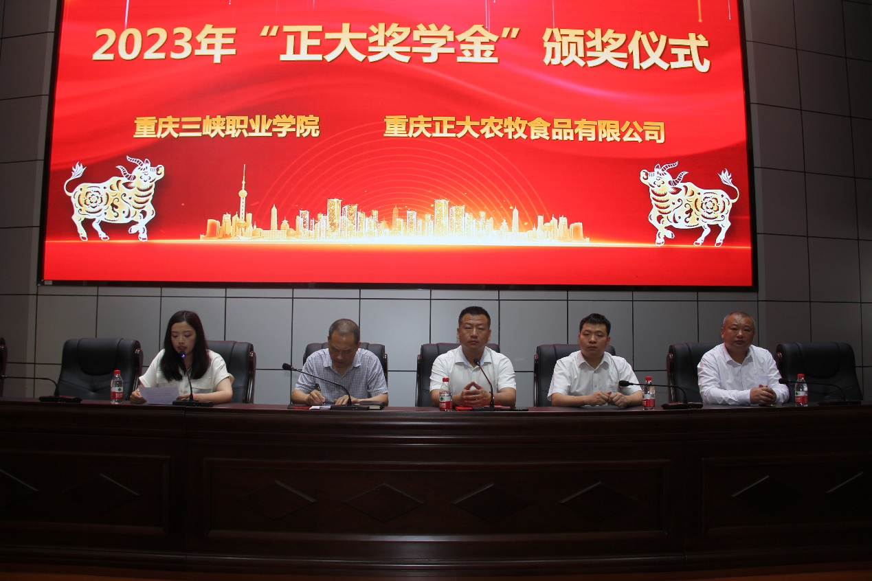 2023年6月27日下午,正大集团重庆区生猪养殖事业助理副总裁李元华,重庆三峡职业学院动物科技学副院长向邦全、动物科技学院党总支副书记李思琪,重庆正大农牧食品有限公司人力资源经理龚运海,重庆、贵州区招聘经理李波主持召开2023年“正大奖学金“颁发仪式。