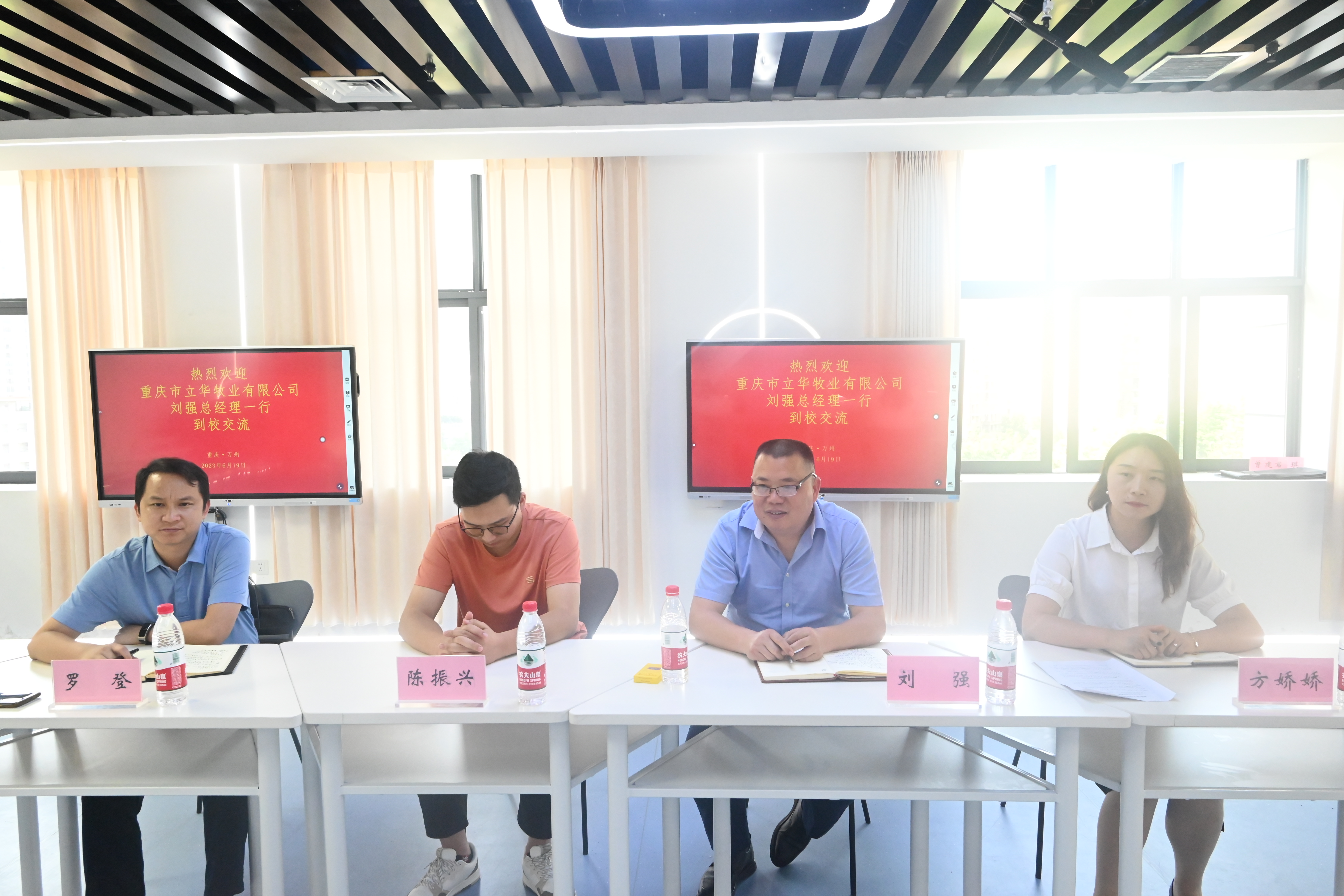 6月19日,重庆市立华牧业有限公司刘强总经理一行到我校参观调研,开展校企合作交流,动物科技学院党总支书记、院长张传师、副院长向邦全等热情接待立华公司一行。