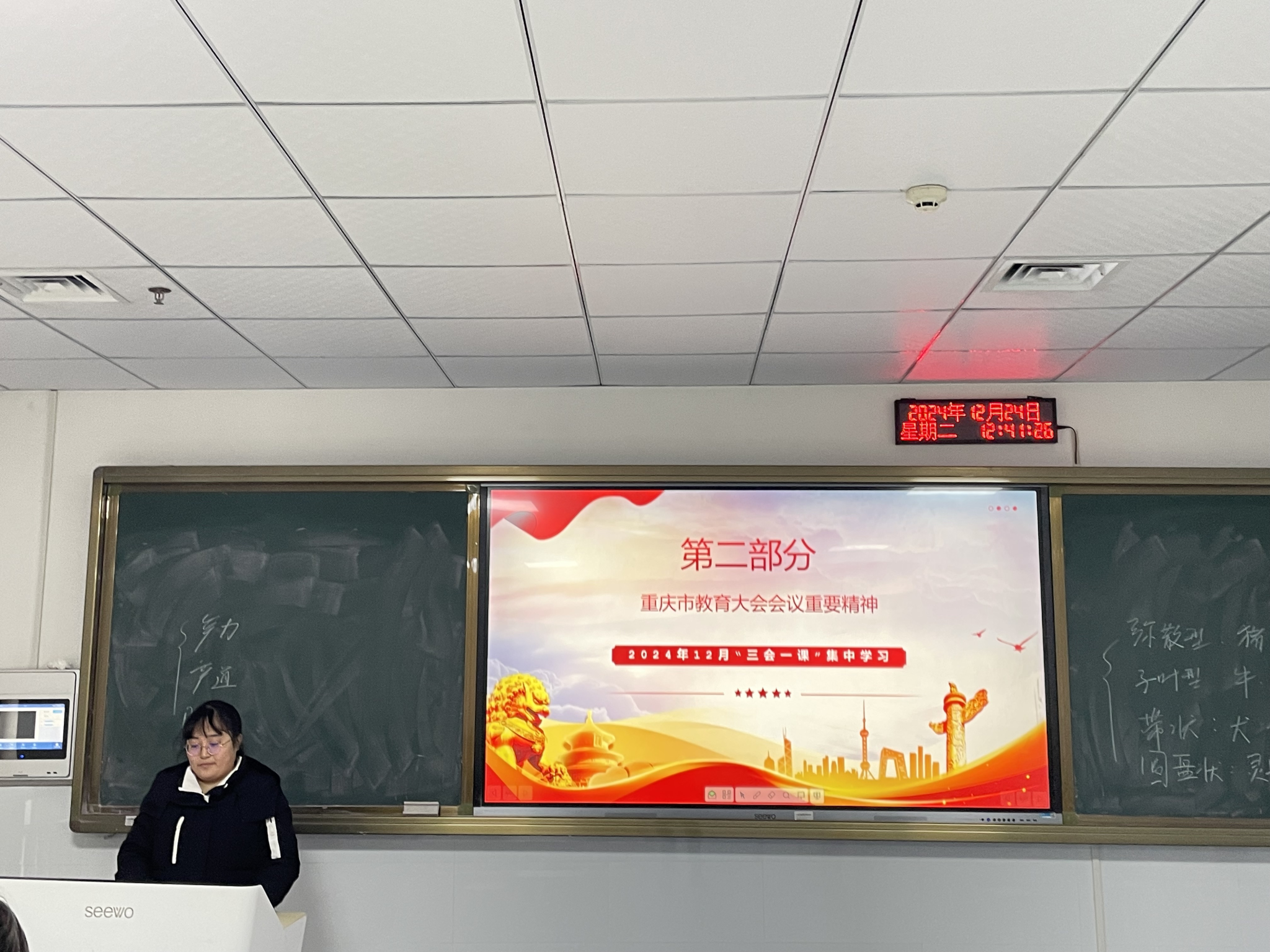 2024年12月24日下午12:40,动物科技学院第三党支部全体党员在现代畜牧科技大楼507教室进行了12月的“三会一课”集中学习,会议由第三党支部组织委员黄石磊同志主持。