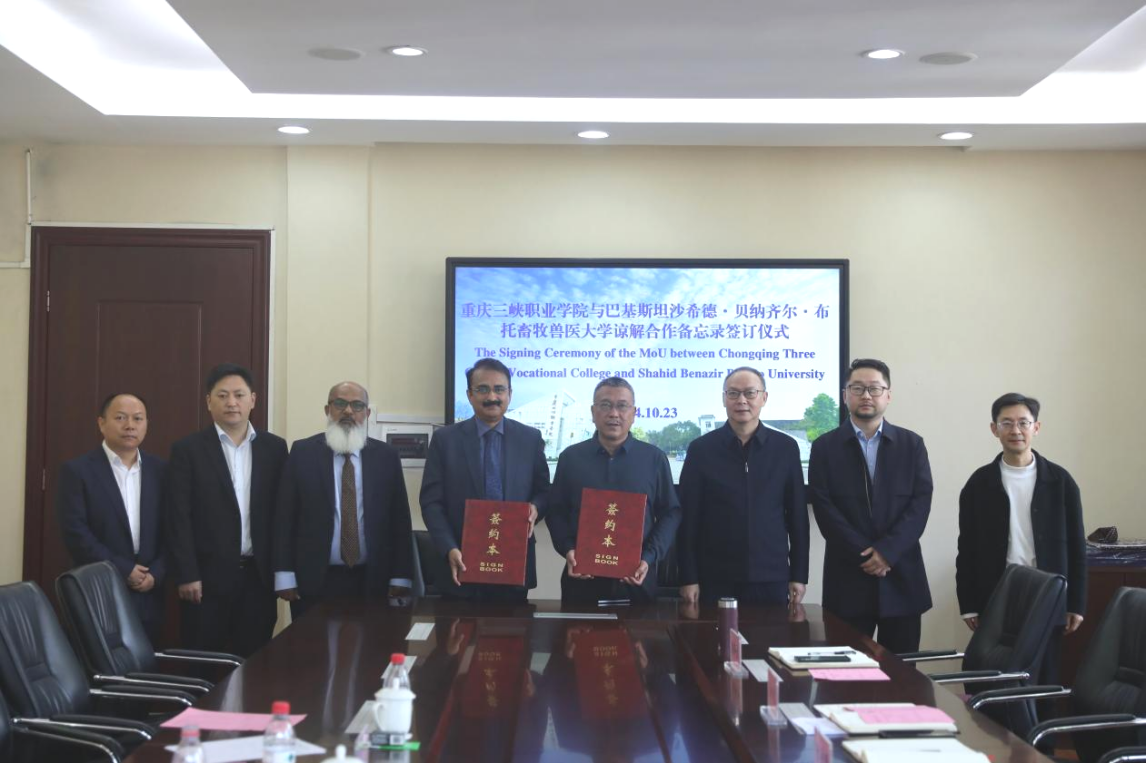 10月22日至23日,我国睦邻友好国家巴基斯坦沙希德·贝纳齐尔·布托畜牧兽医大学校长Mohammed Farooque Hassan和Zahid Iqbal Rajput院长莅临美丽万州,与动物科技学院领导、畜牧专业骨干齐聚一堂,共谋跨国校际之间合作新篇章。