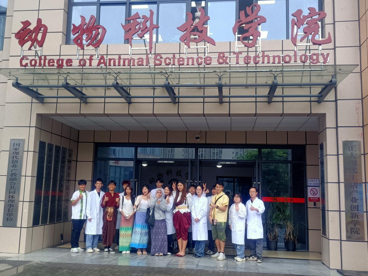活动结束后,泰国格乐大学研学团同学们与动物科技学院师生一起合影留念。